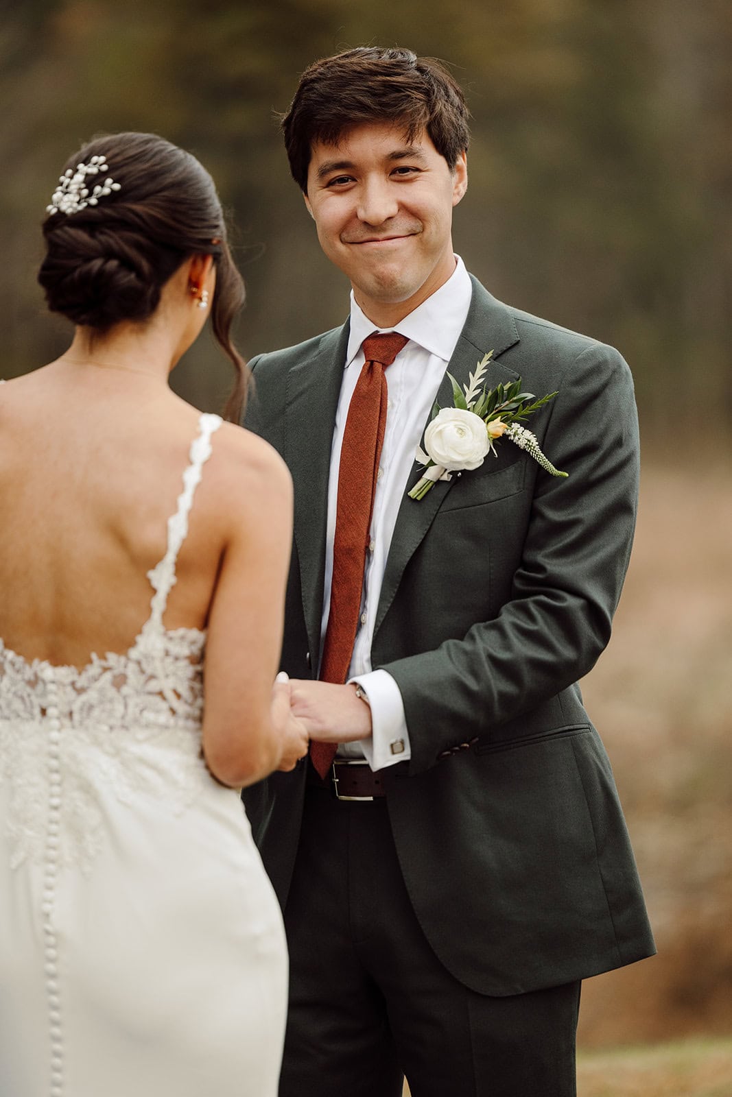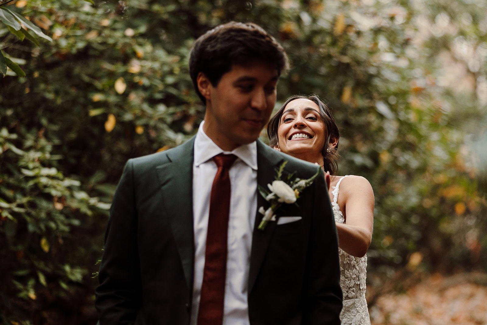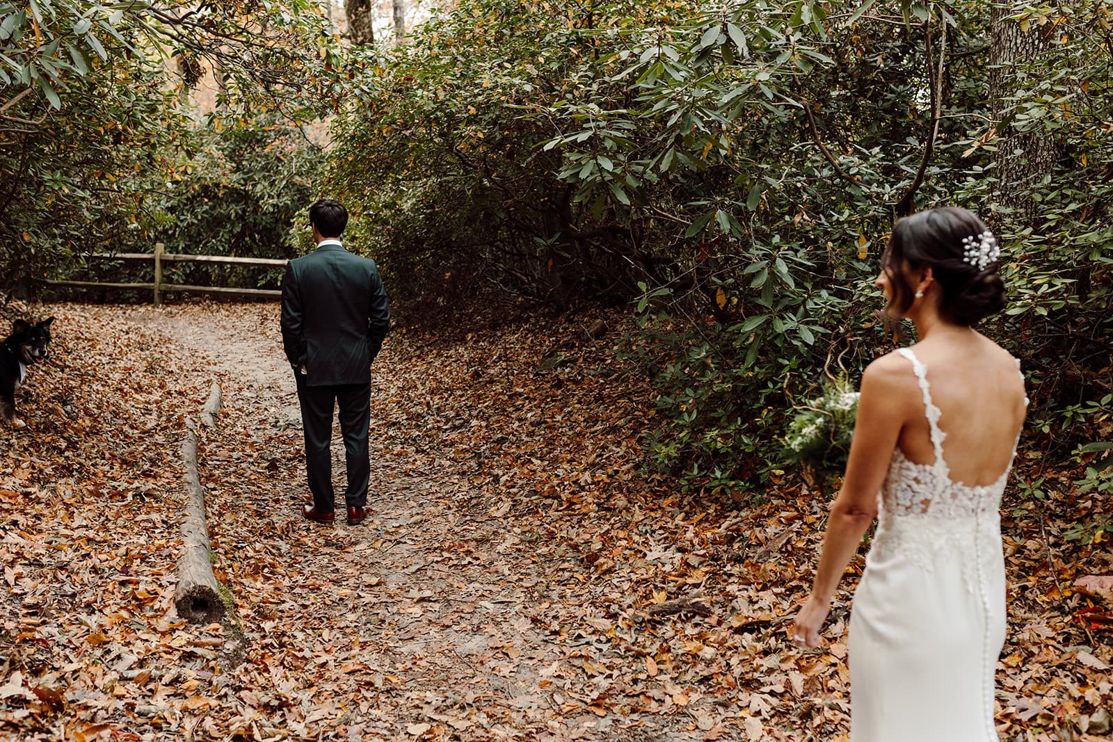 We love when couples carve out space in their day for connection like this. After their first look and a few private minutes to soak it all in, they shared personal vows surrounded by nothing but fresh air and the rustle of leaves.
