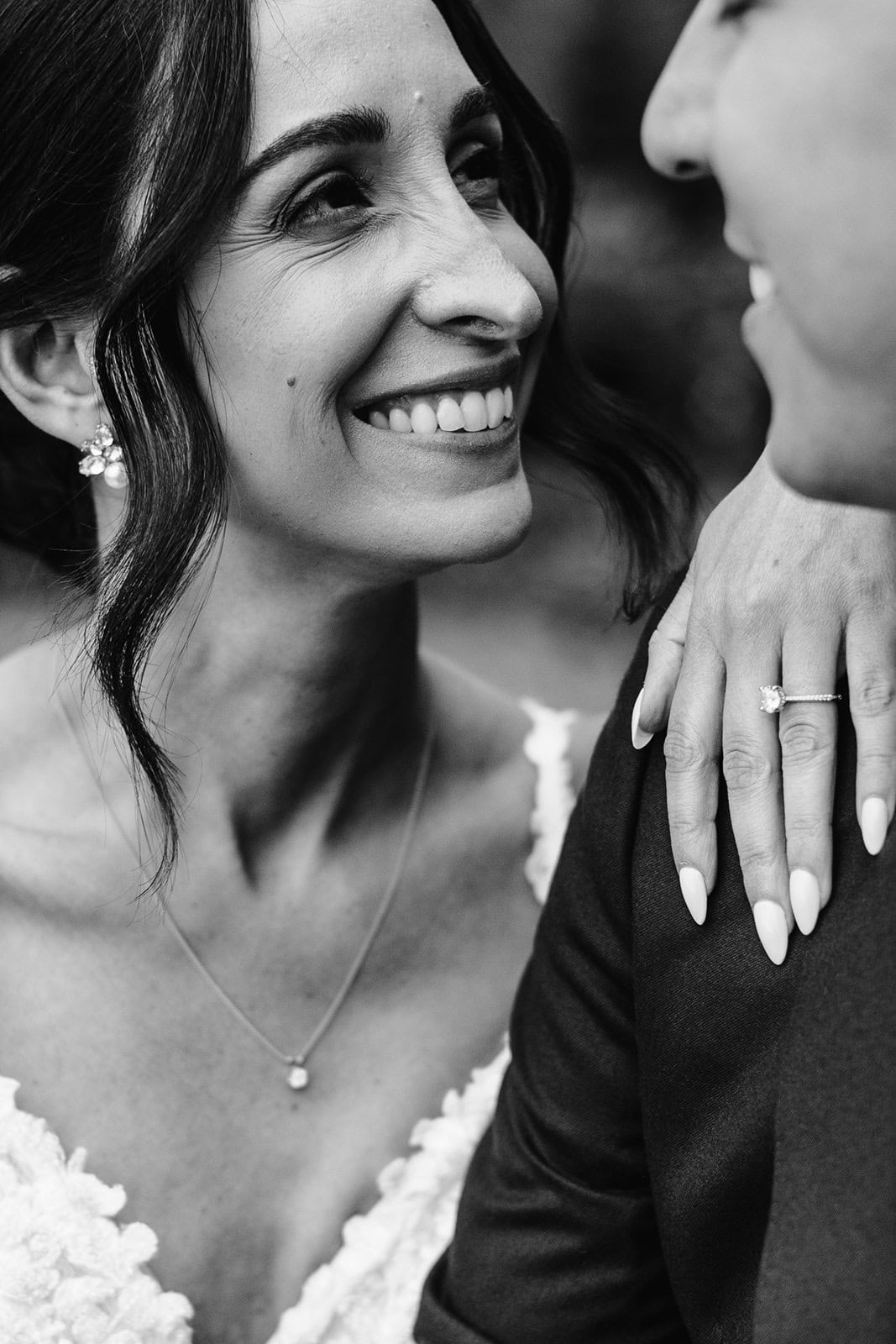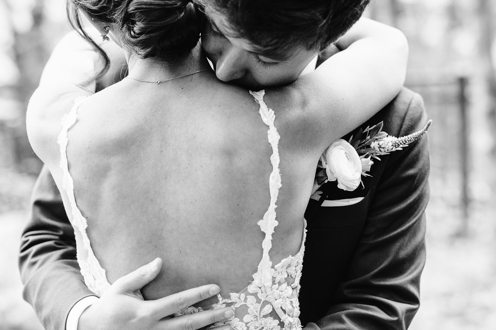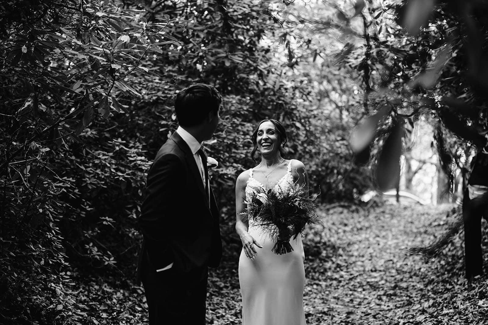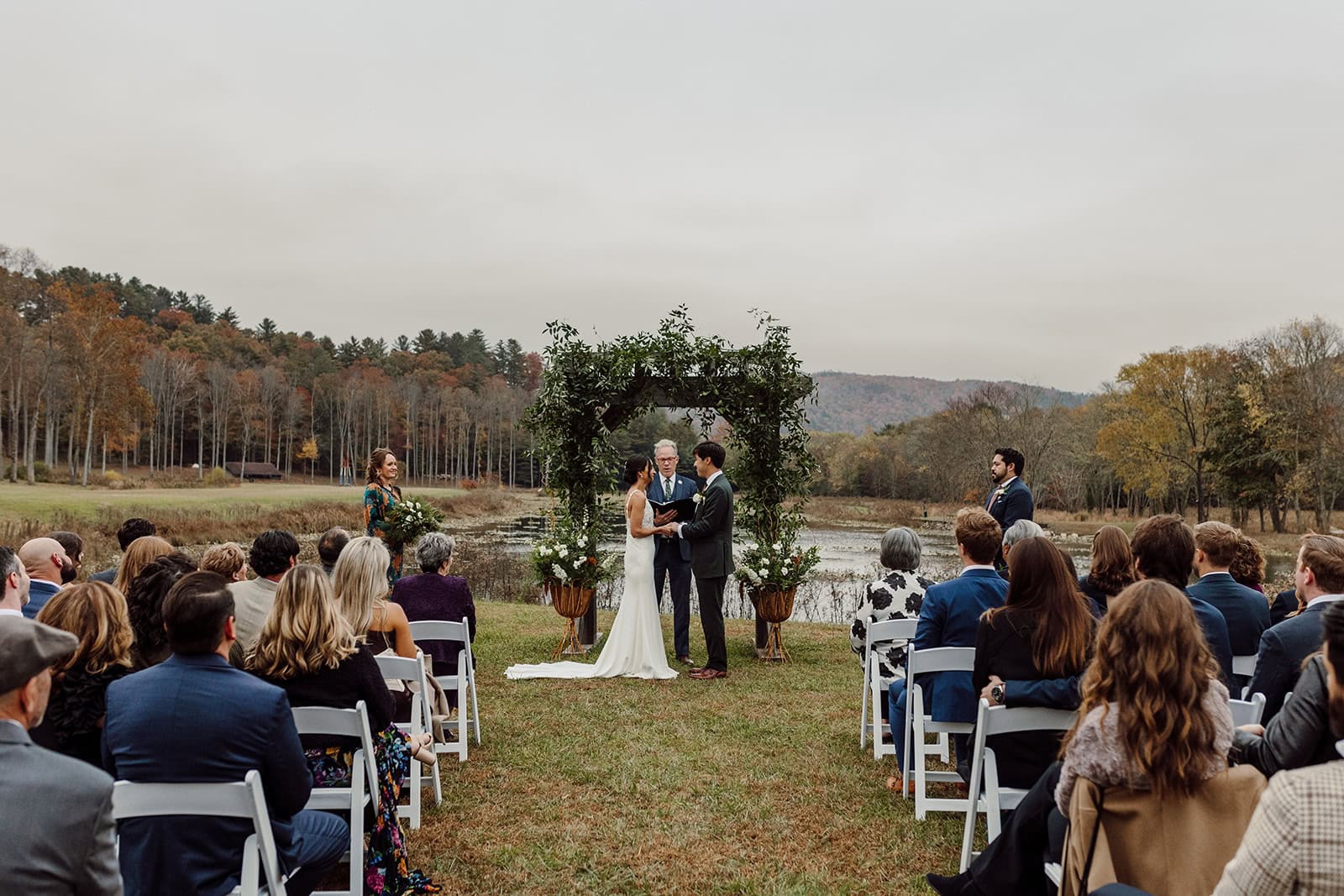We love when couples carve out space in their day for connection like this. After their first look and a few private minutes to soak it all in, they shared personal vows surrounded by nothing but fresh air and the rustle of leaves.