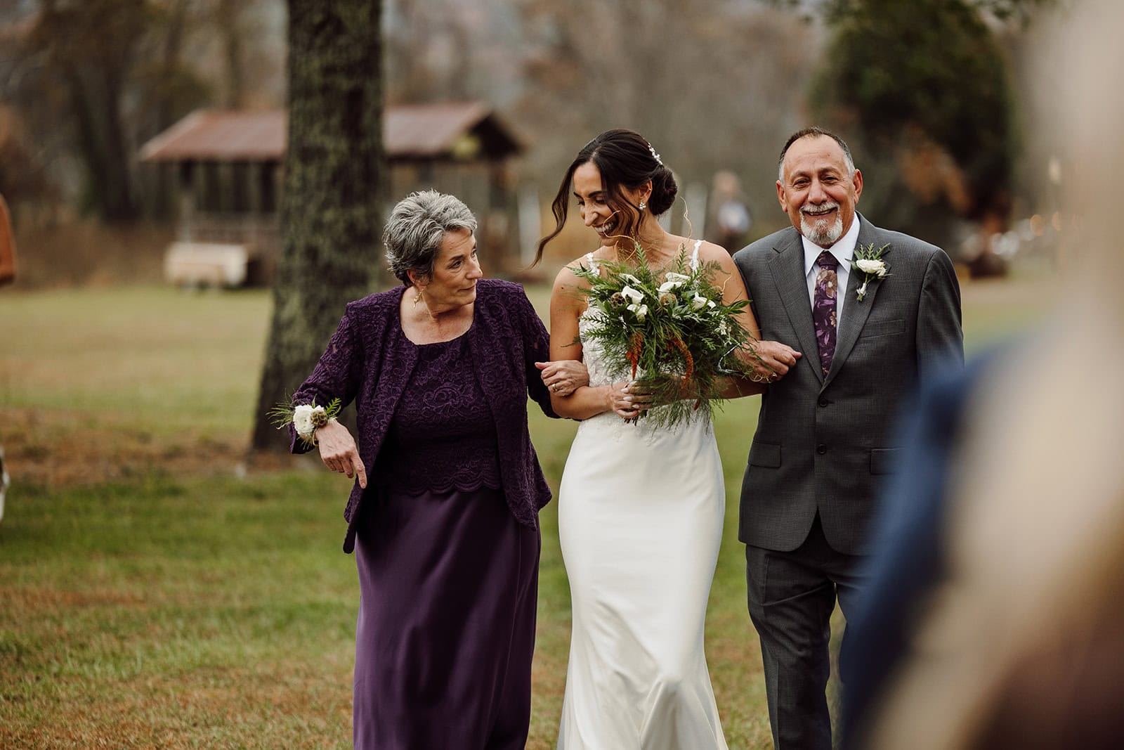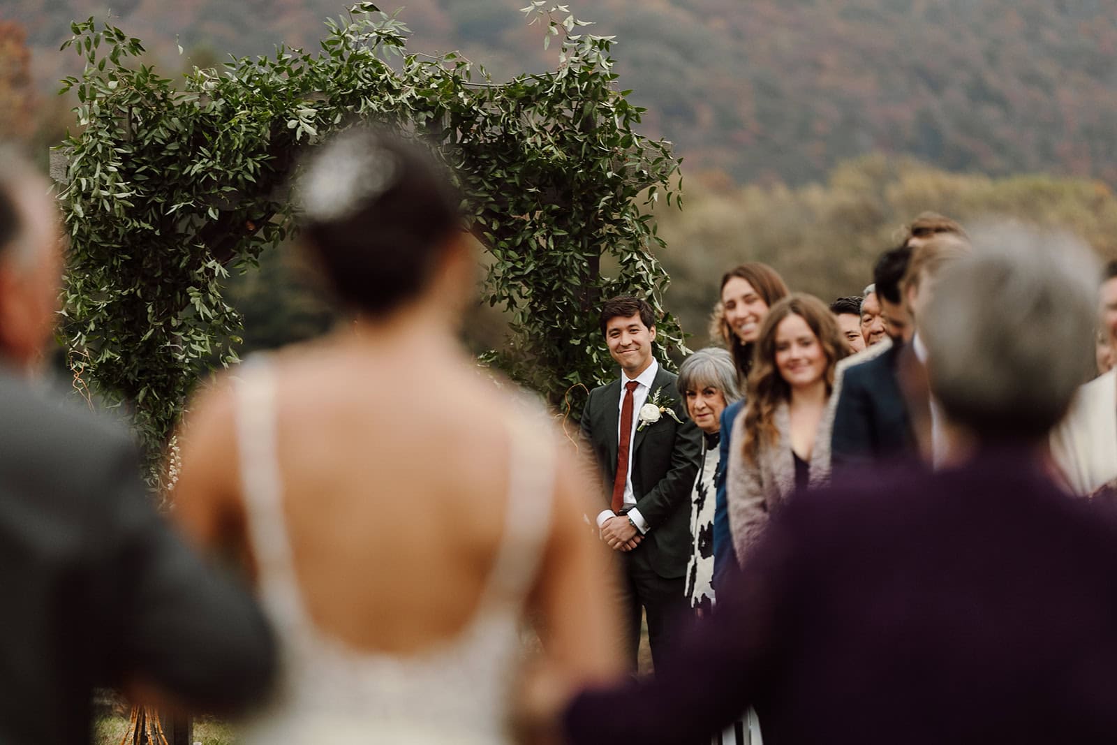 Before their guests arrived, Maraia and Kyle snuck away to Caesar’s Head Overlook, a spot near and dear to them, for their first look. The drive up the mountain built the anticipation, and as they shared that quiet moment—overlooking layers of fall color stretching into the distance—you could feel the joy radiating from both of them.