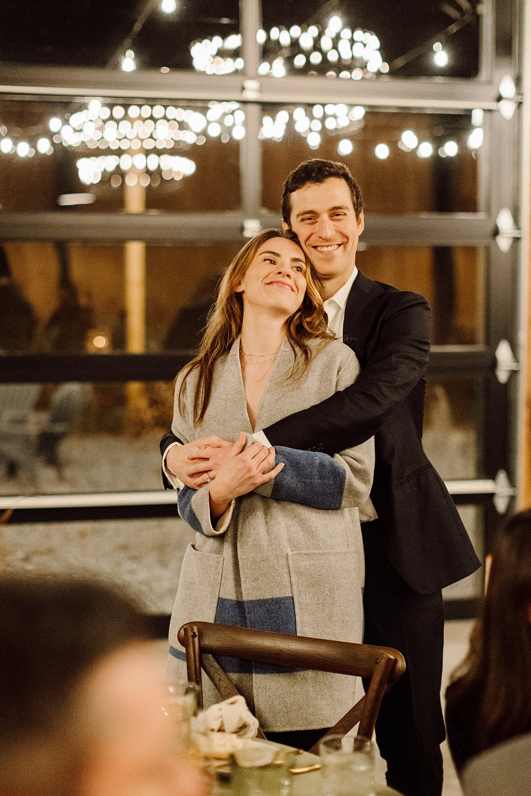 The Mayes Event Center at Deerwoode provided a cozy yet elevated setting for the evening’s celebration. Planter box centerpieces, a beautifully styled dessert table with pastries and a small cake, and flickering candlelight set the tone for an evening full of warmth and joy.