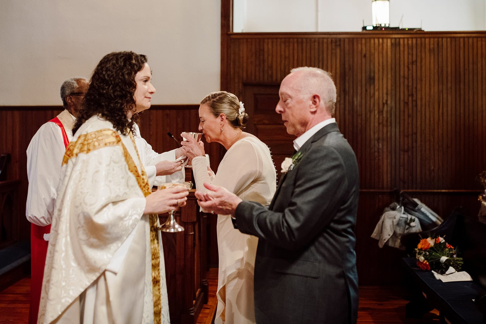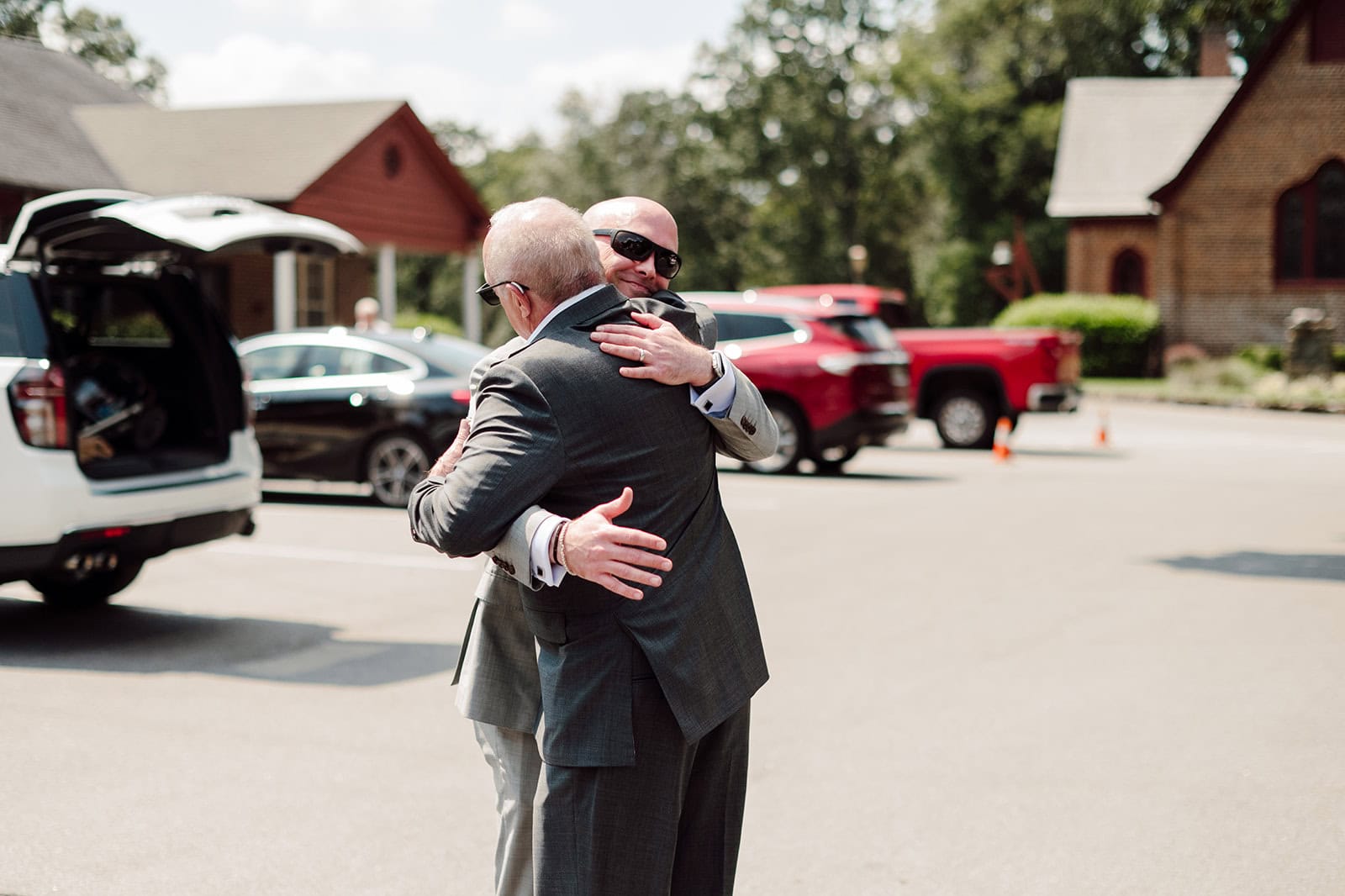 The day began in the quiet corners of St. Mark’s. Caroline joined Mary and her bridesmaids in the bride’s room as excitement buzzed gently through the air. Across the property, the second photographer captured the venue as sunlight streamed in through the trees. Just after Mary stepped into her dress and laced up her heels, she met Tom beneath the oaks behind the church for an emotional first look. They took a few private minutes alone, away from the crowd and the cameras, to soak in the moment and exchange personal vows. It was a slow, quiet start to a deeply meaningful day.