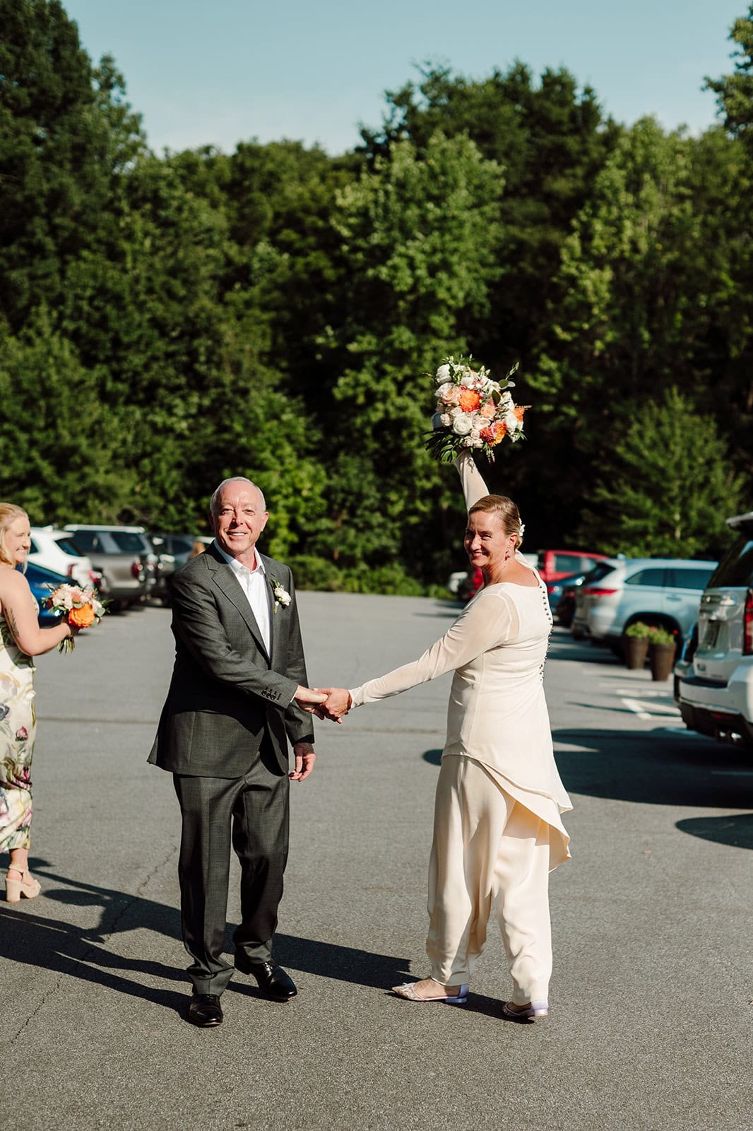 On a golden August afternoon, Mary and Tom celebrated their love in a warm, heartfelt ceremony at St. Mark’s Episcopal Church, followed by a joyful reception at The Rafters, nestled on the same charming property in Huntersville, NC. With around 100 of their closest family and friends, their wedding day was intimate, intentional, and full of meaning—just the way they wanted it.