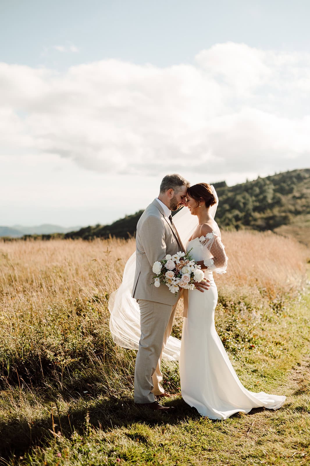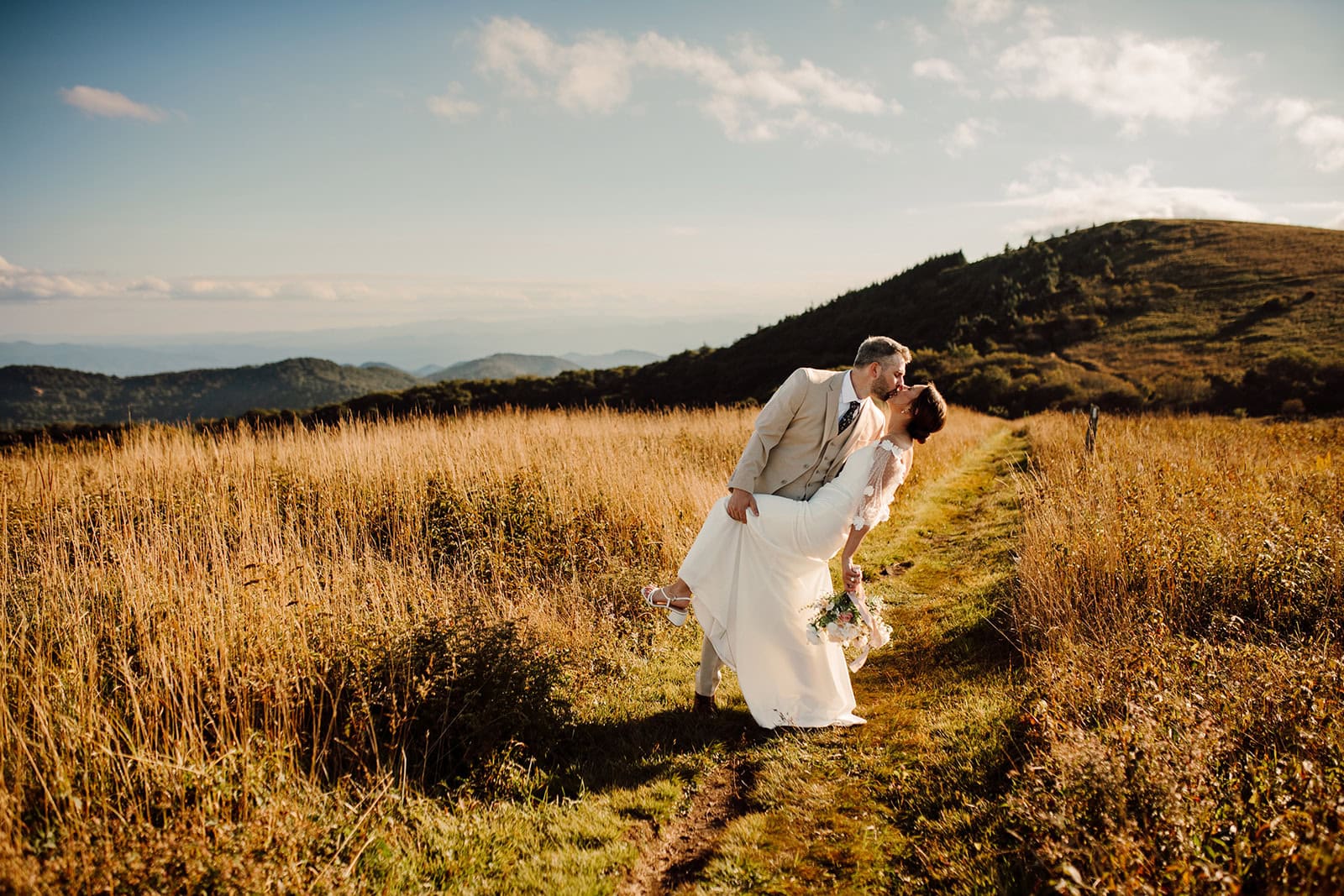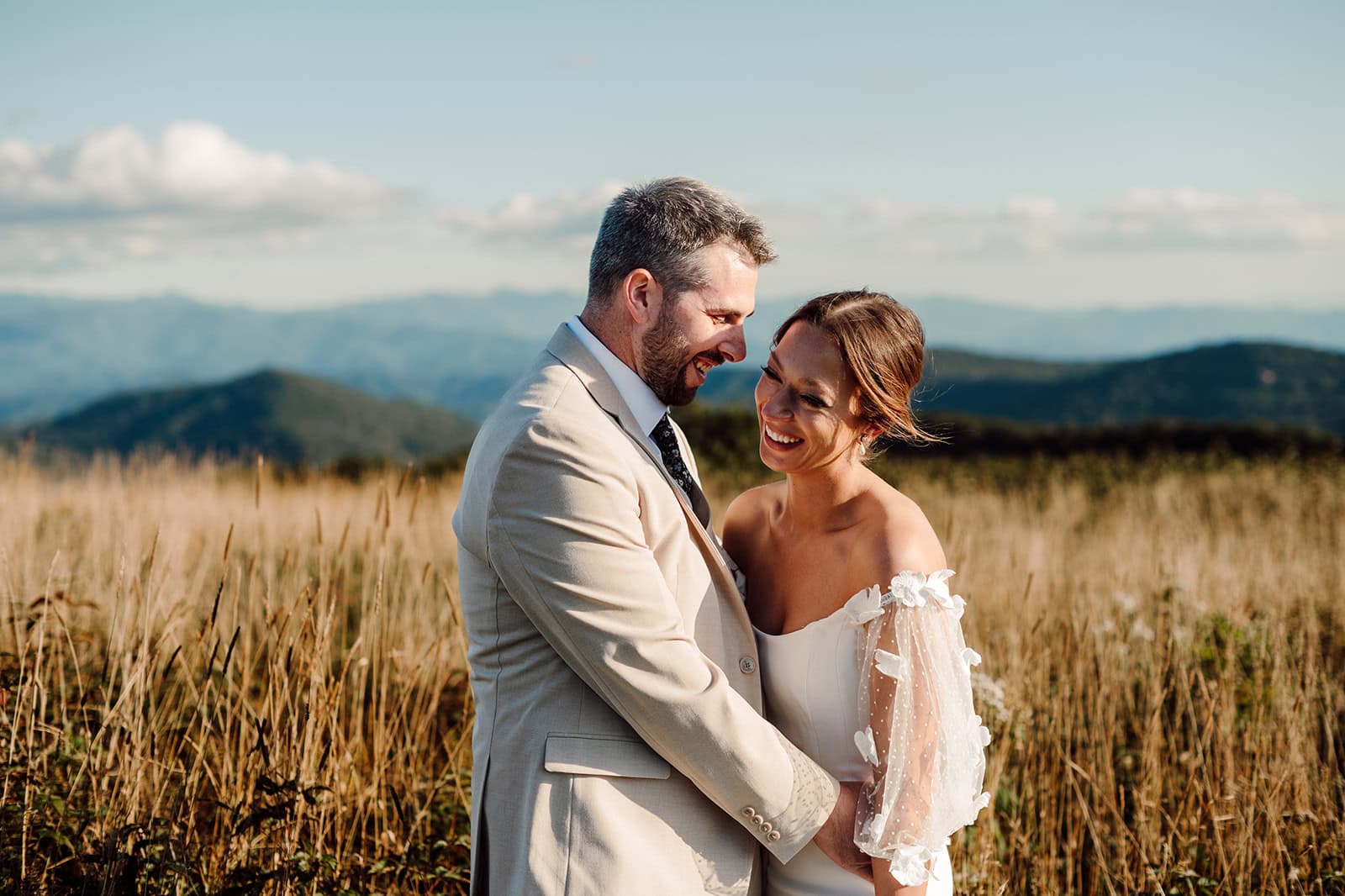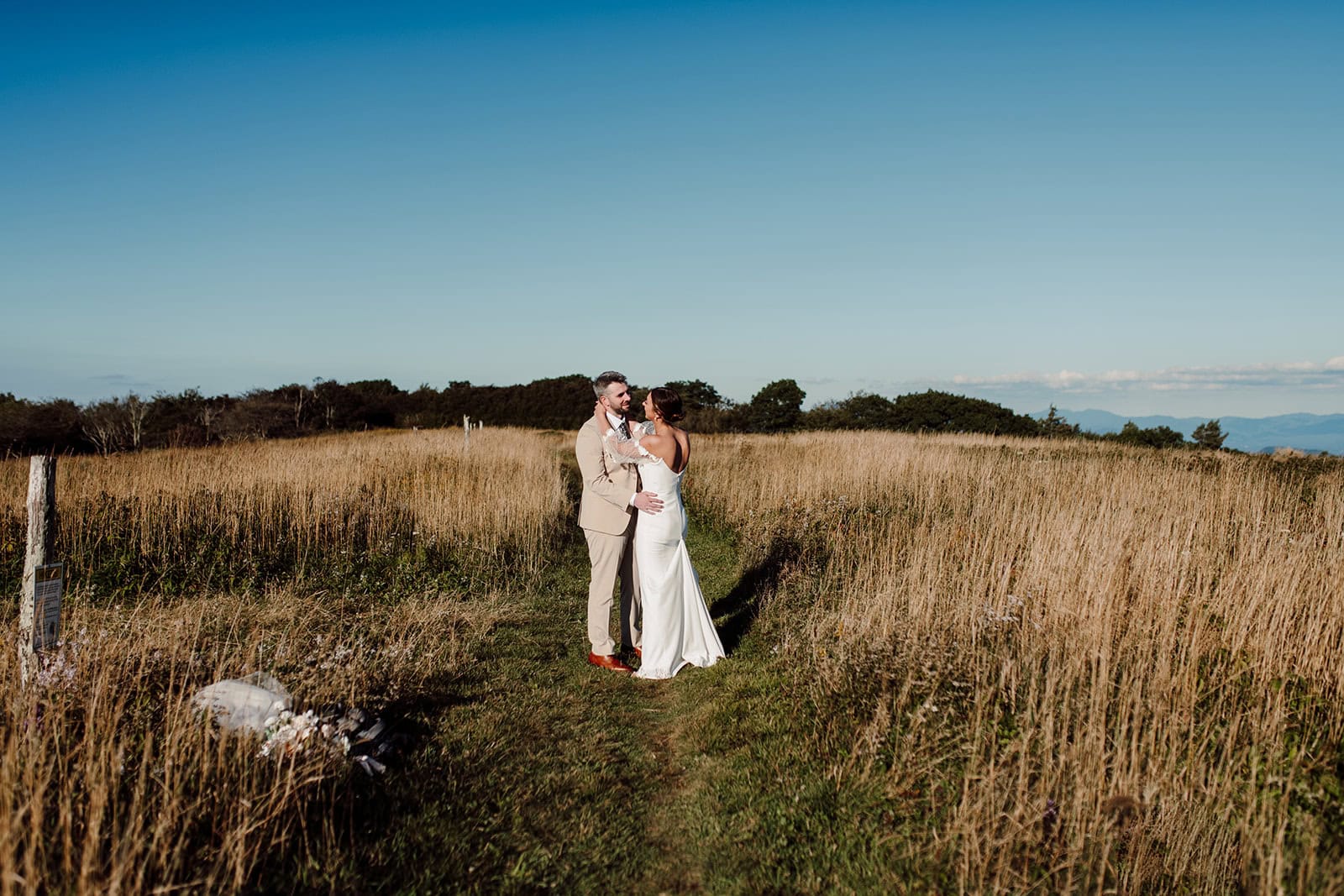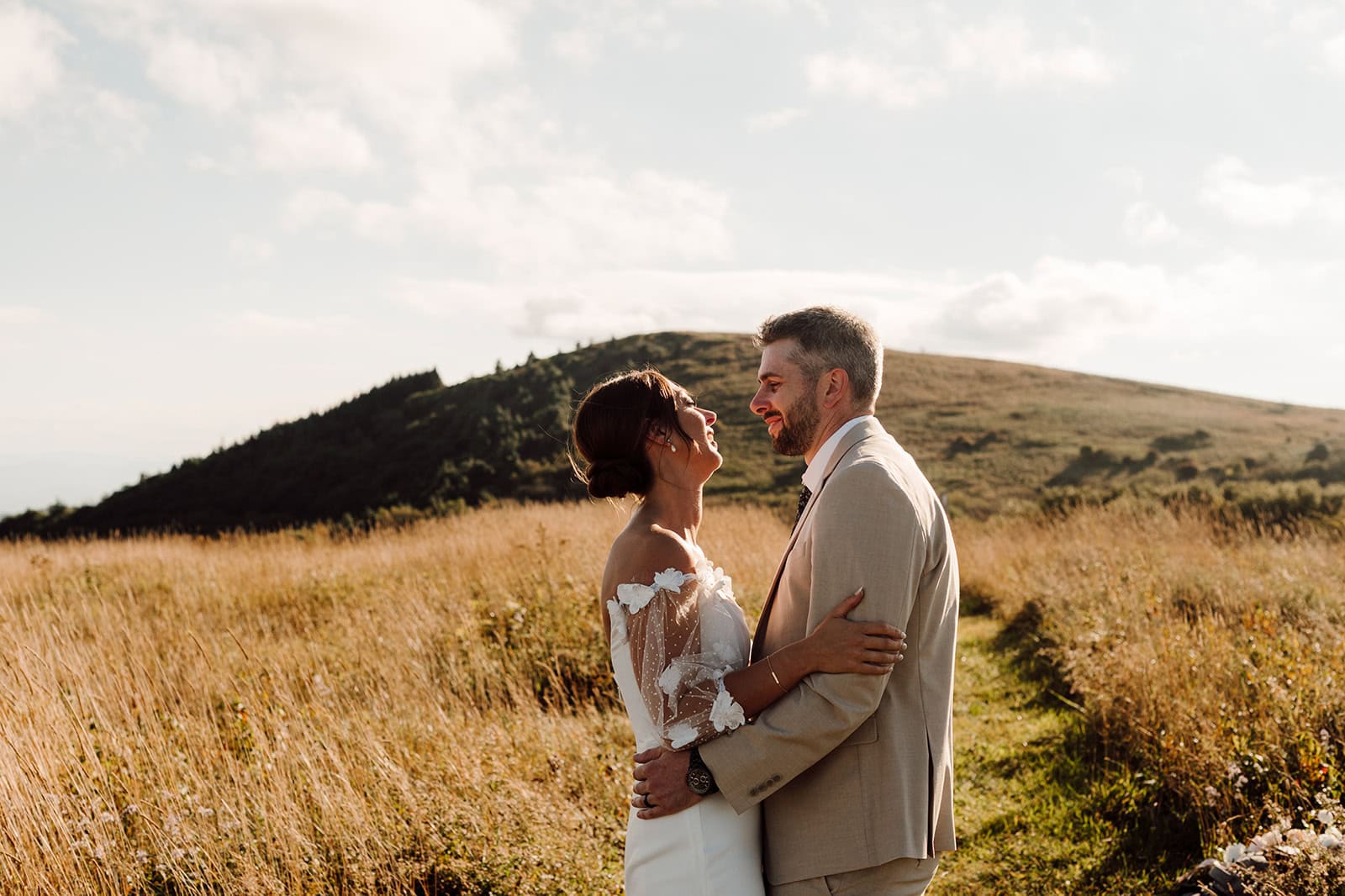 Surrounded by nature and their loved ones, Morgan and Brent exchanged vows in a ceremony that was both intimate and awe-inspiring on the back deck of their vacation rental. Then the couple chose Big Bald Mountain, a grassy summit along the Appalachian Trail, for their couple’s portraits. With 360-degree views of the Blue Ridge Mountains, it was the perfect chance for the newlyweds to get away briefly and soak up the beauty of Western North Carolina.