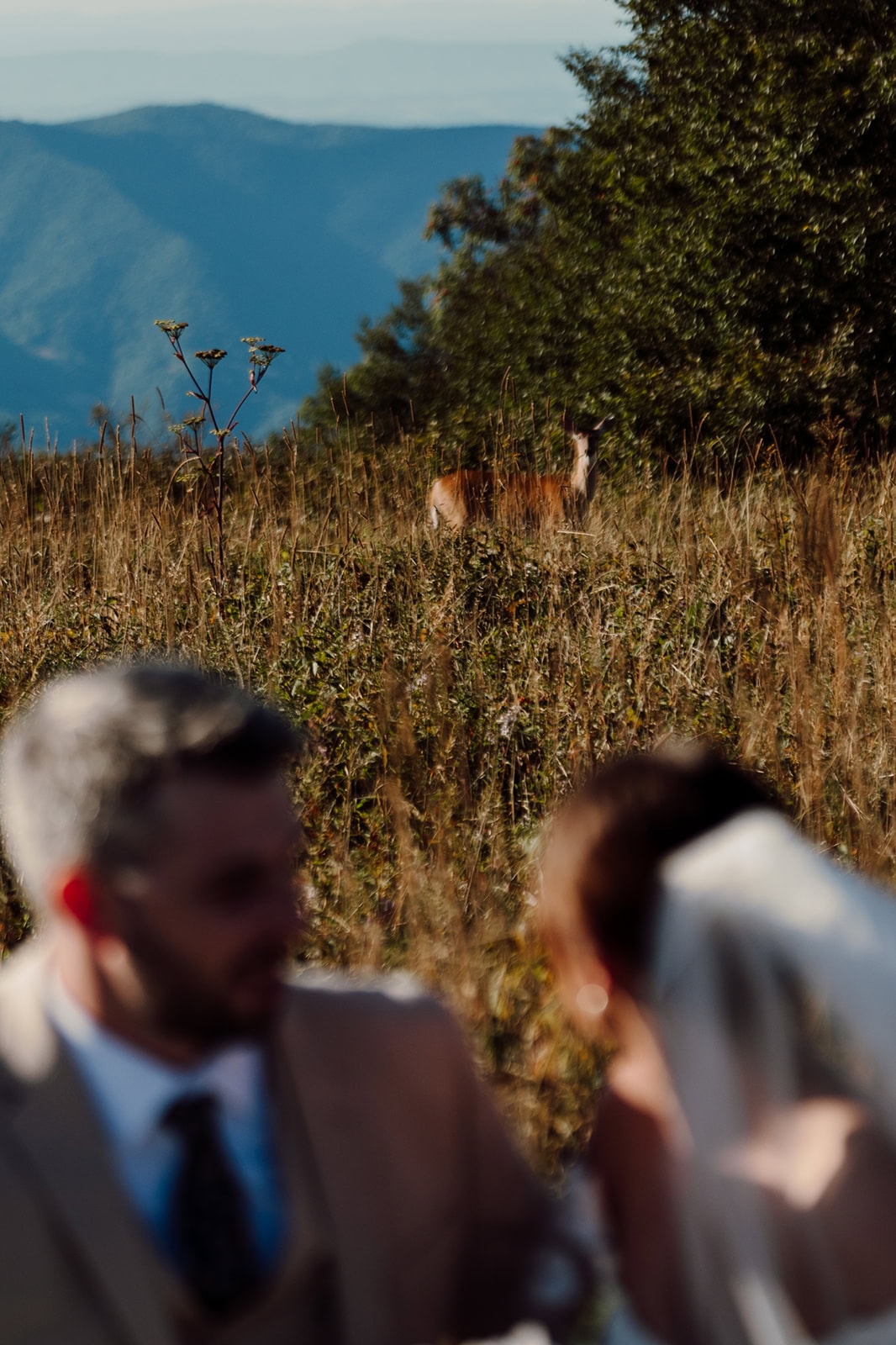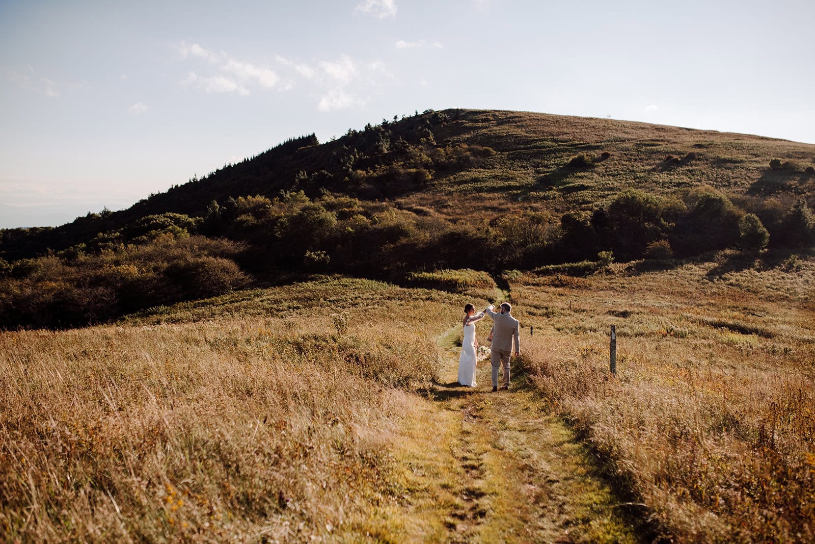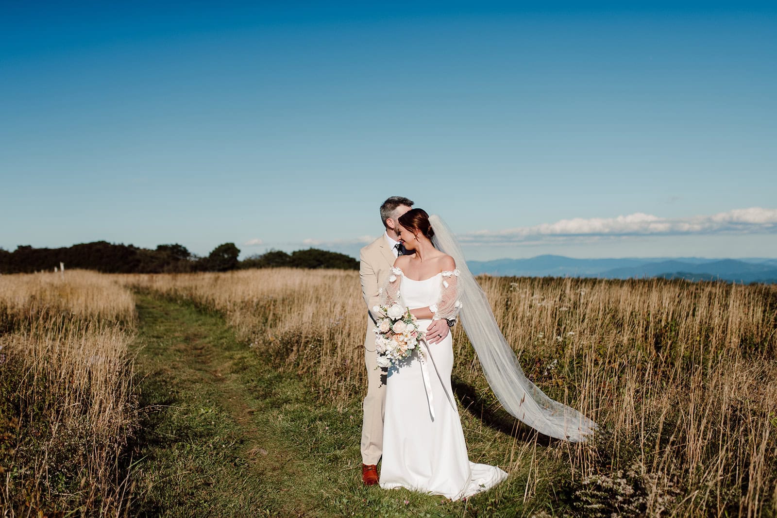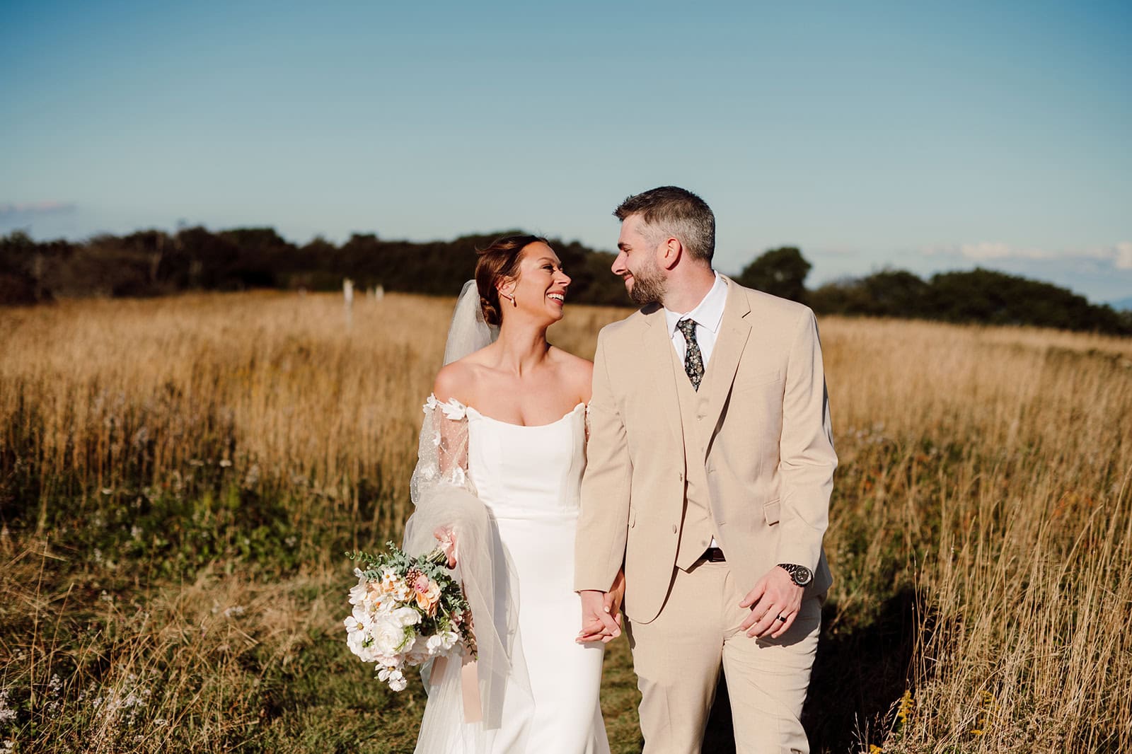 Surrounded by nature and their loved ones, Morgan and Brent exchanged vows in a ceremony that was both intimate and awe-inspiring on the back deck of their vacation rental. Then the couple chose Big Bald Mountain, a grassy summit along the Appalachian Trail, for their couple’s portraits. With 360-degree views of the Blue Ridge Mountains, it was the perfect chance for the newlyweds to get away briefly and soak up the beauty of Western North Carolina.