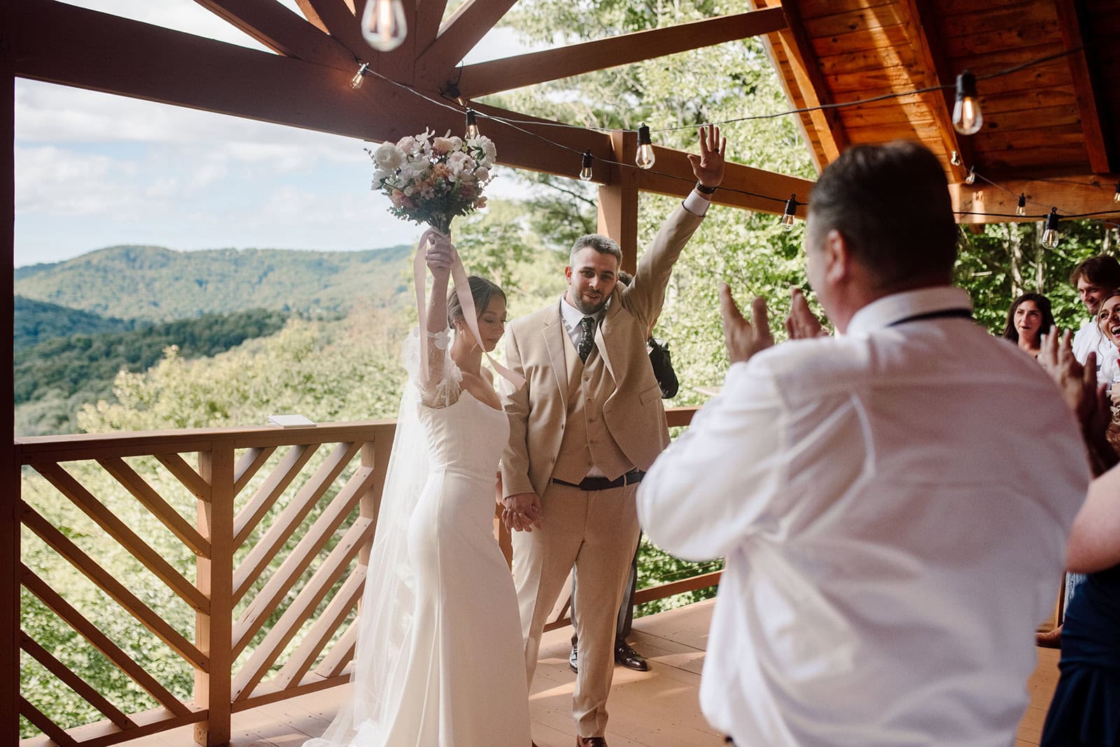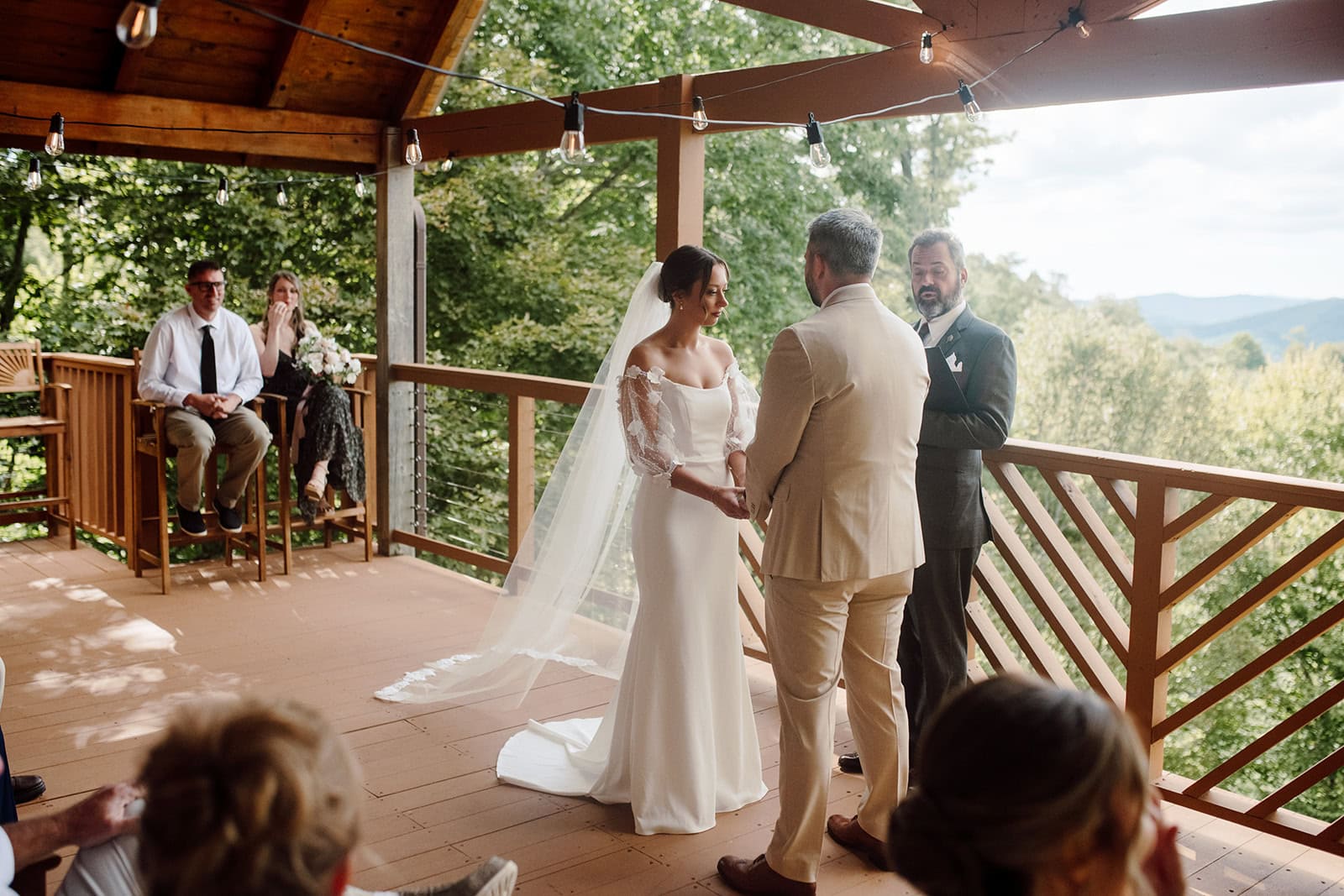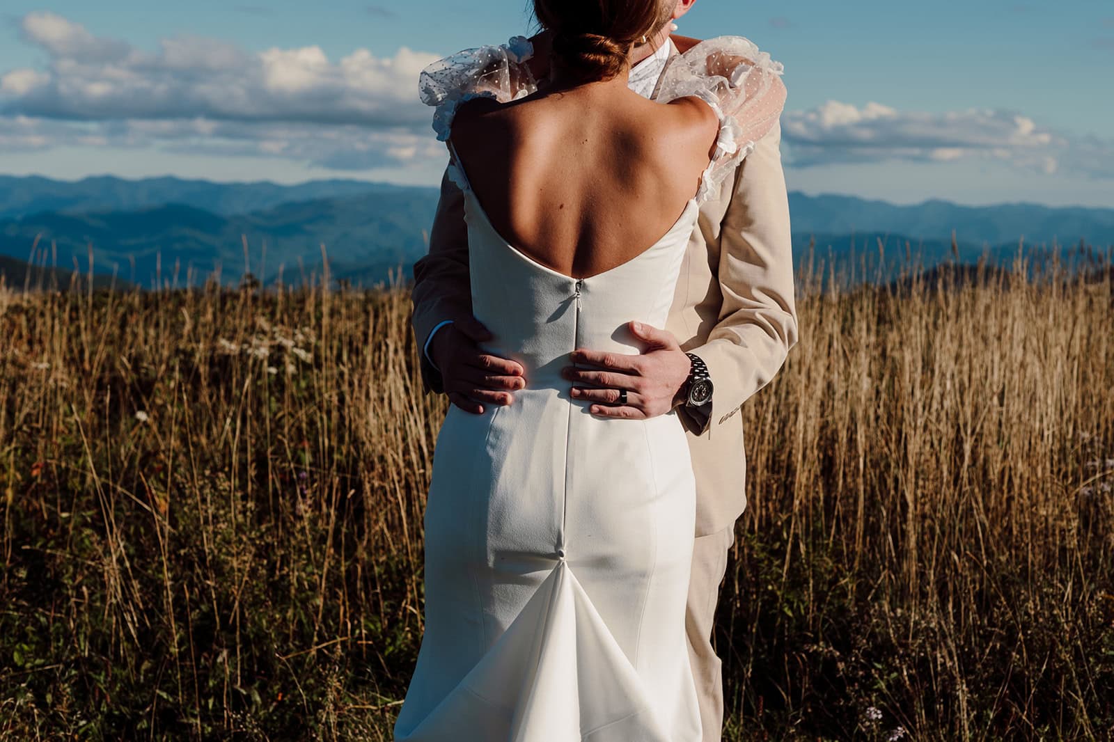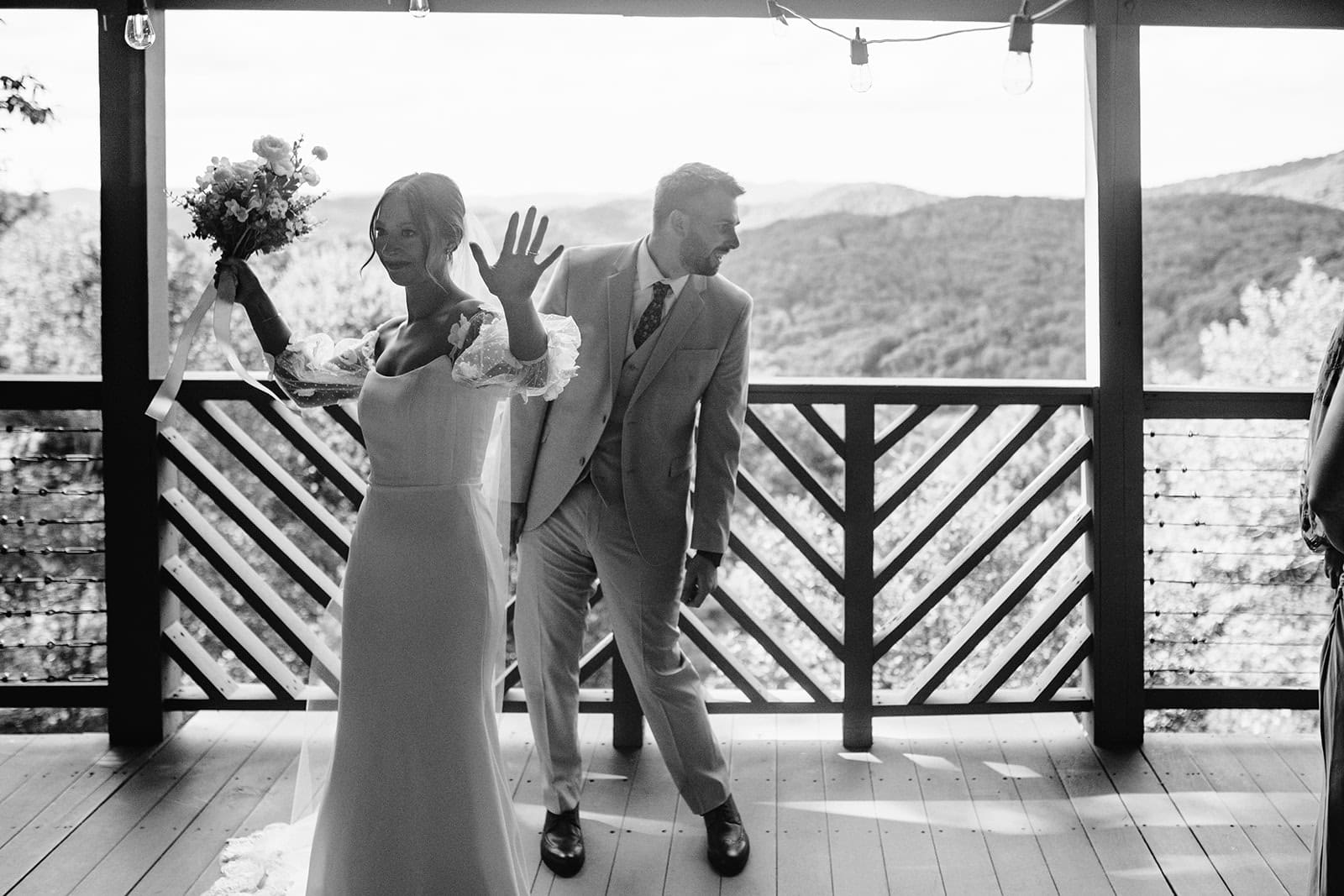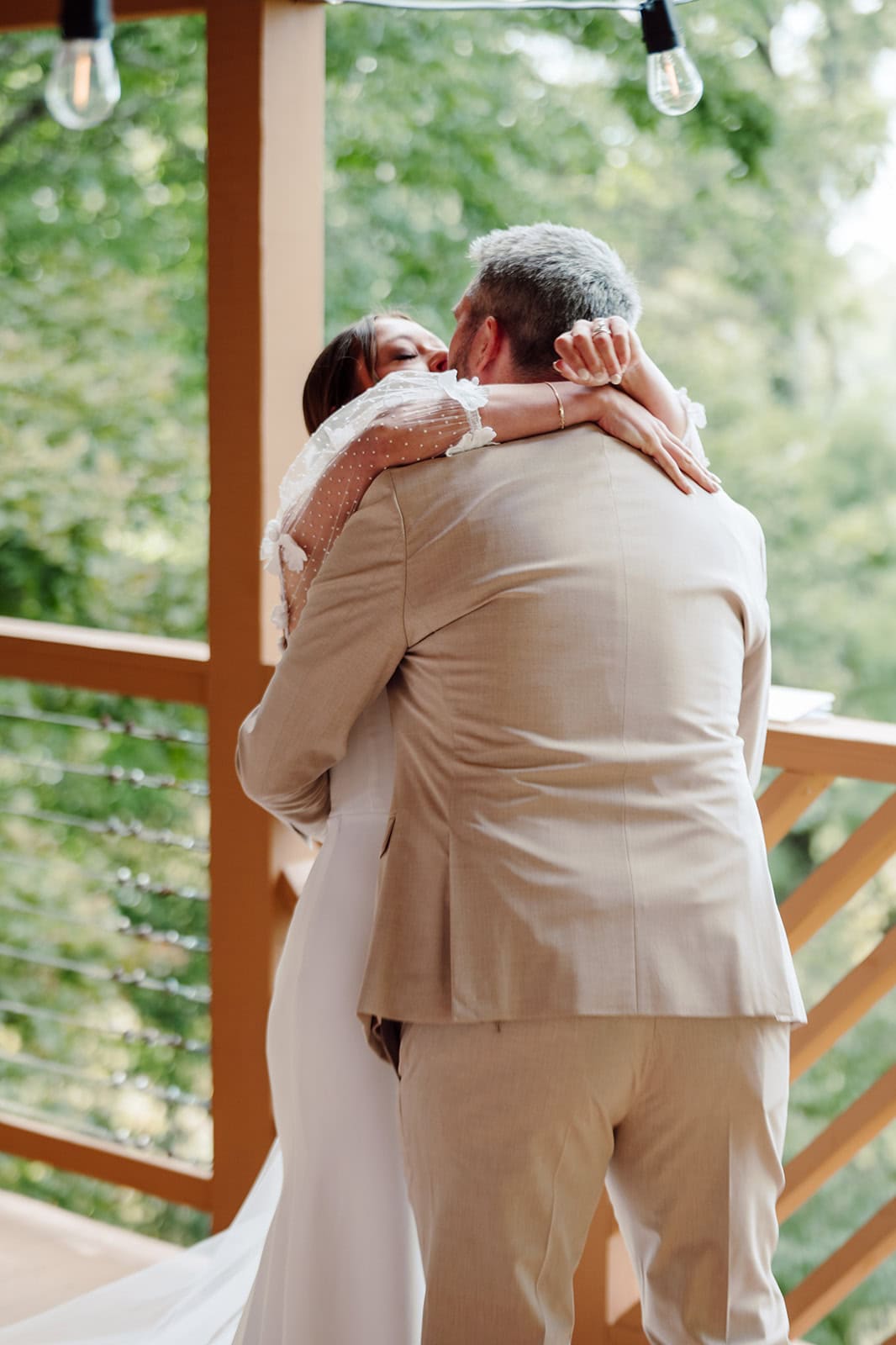Surrounded by nature and their loved ones, Morgan and Brent exchanged vows in a ceremony that was both intimate and awe-inspiring on the back deck of their vacation rental. Then the couple chose Big Bald Mountain, a grassy summit along the Appalachian Trail, for their couple’s portraits. With 360-degree views of the Blue Ridge Mountains, it was the perfect chance for the newlyweds to get away briefly and soak up the beauty of Western North Carolina.