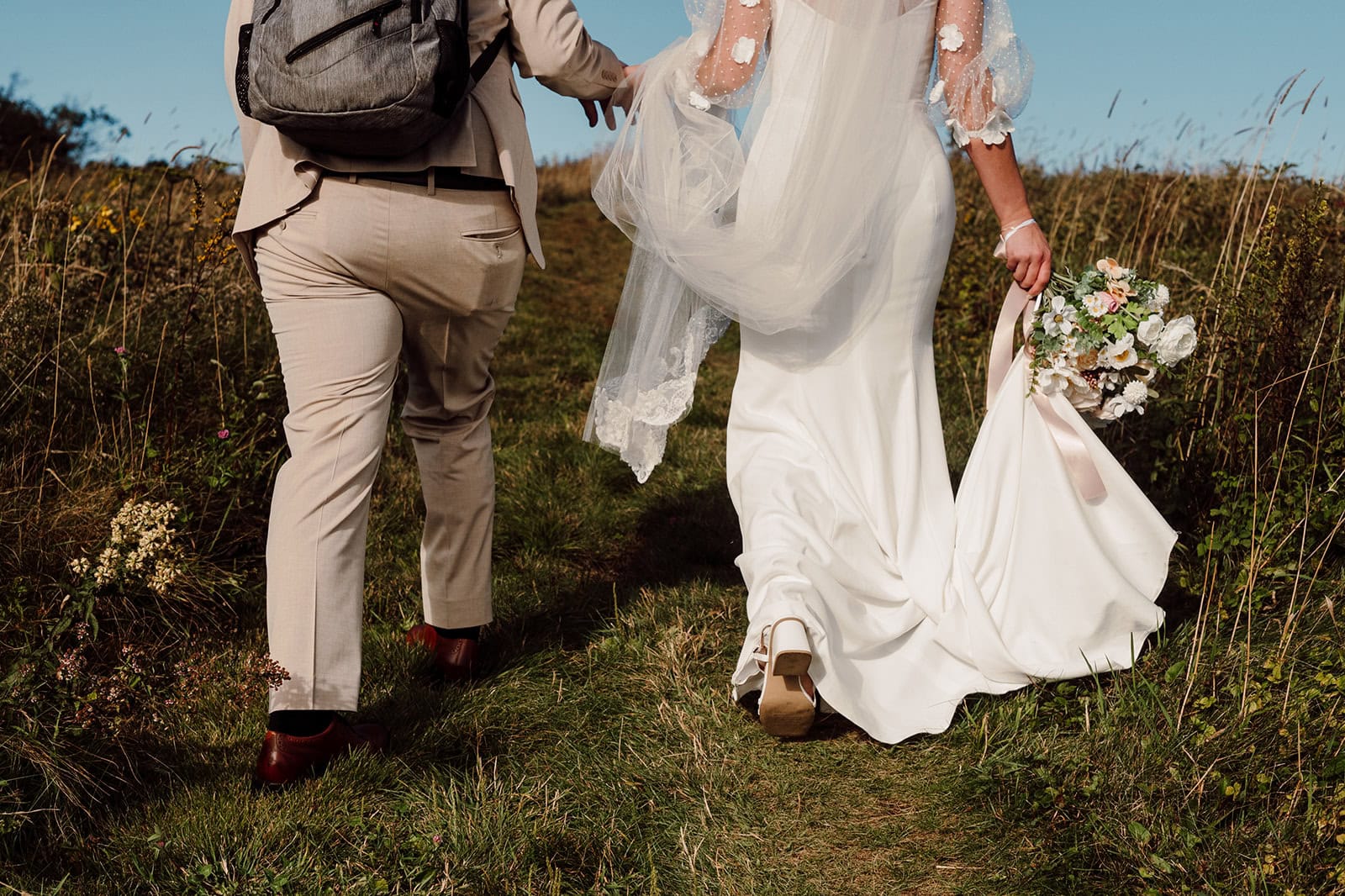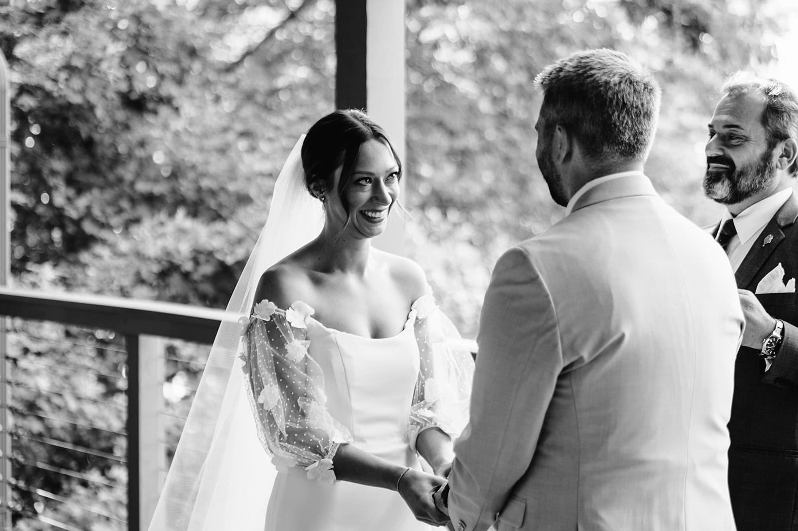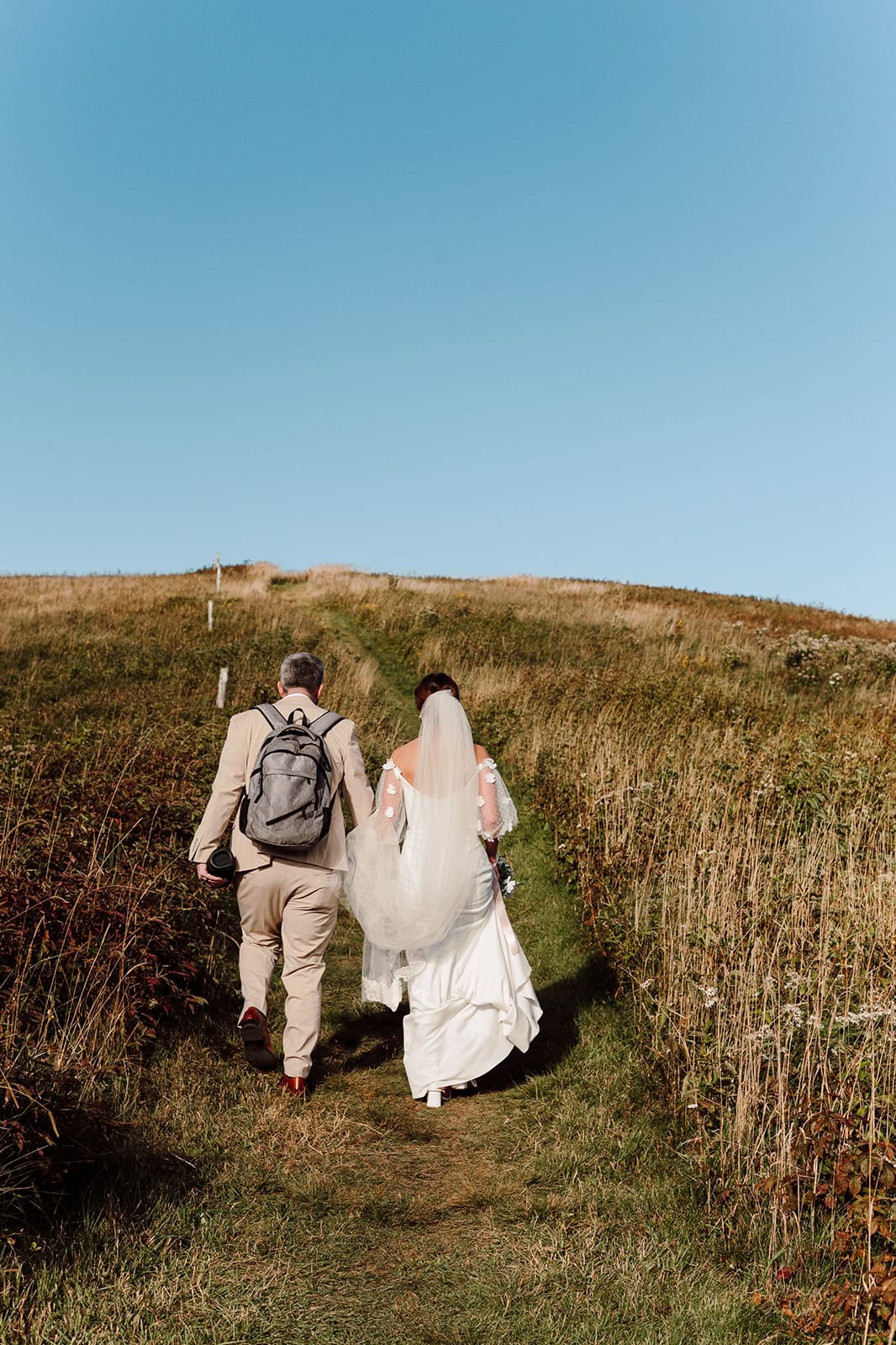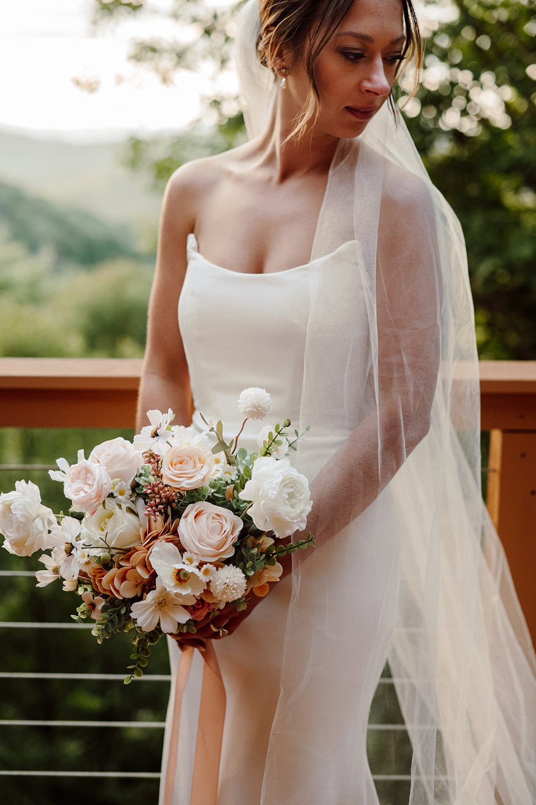 Surrounded by nature and their loved ones, Morgan and Brent exchanged vows in a ceremony that was both intimate and awe-inspiring on the back deck of their vacation rental. Then the couple chose Big Bald Mountain, a grassy summit along the Appalachian Trail, for their couple’s portraits. With 360-degree views of the Blue Ridge Mountains, it was the perfect chance for the newlyweds to get away briefly and soak up the beauty of Western North Carolina.