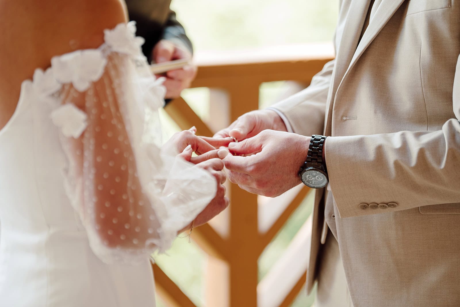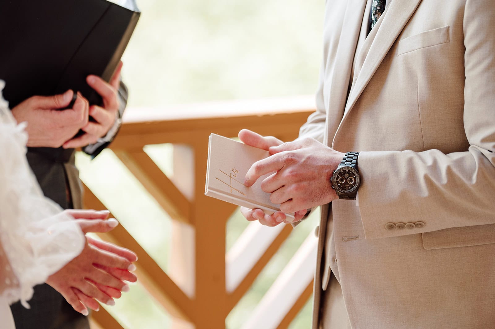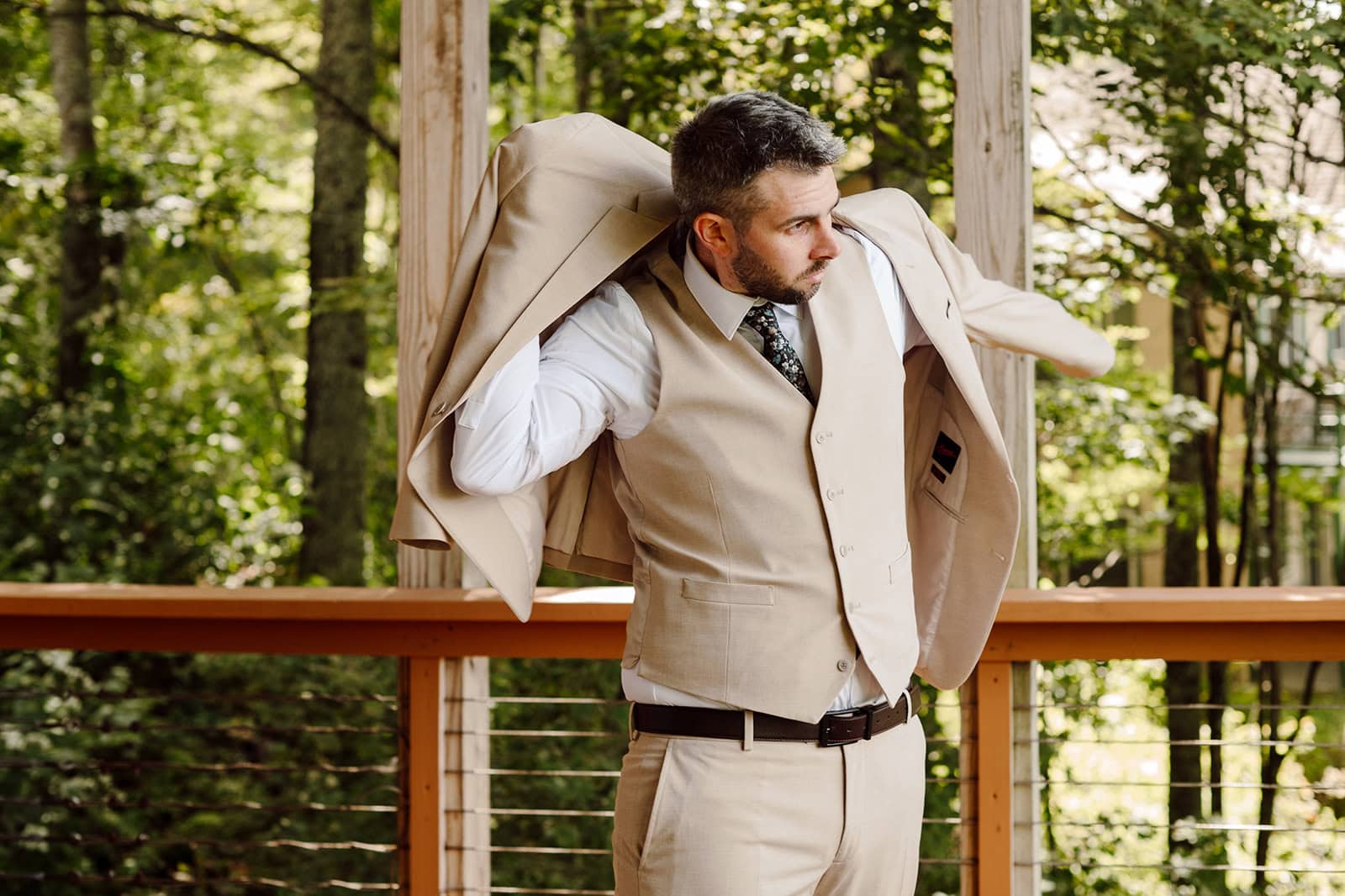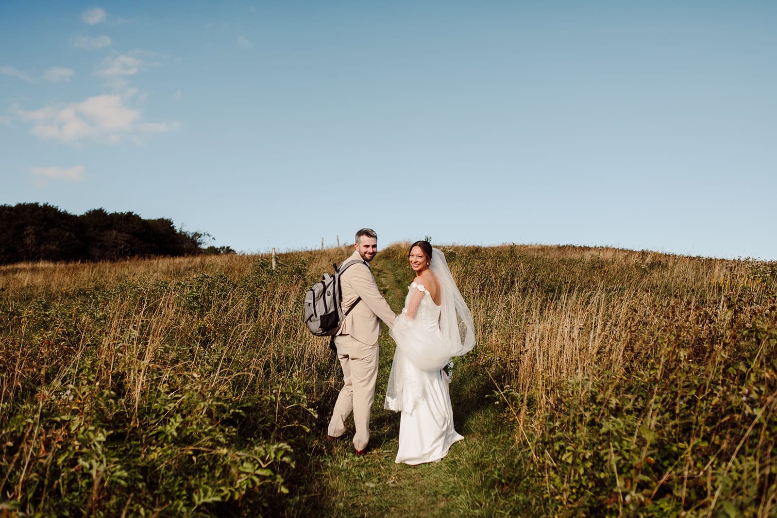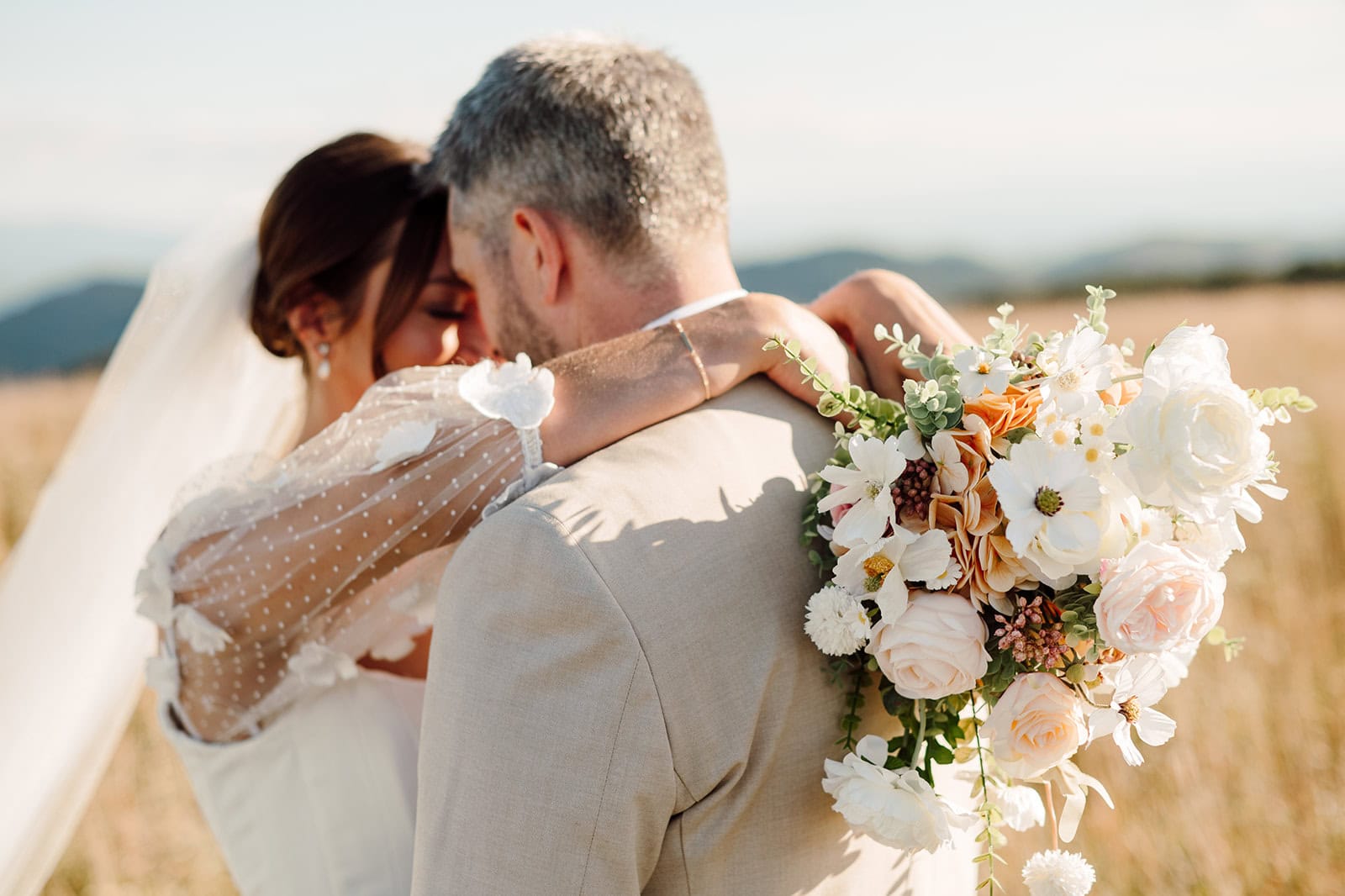 Surrounded by nature and their loved ones, Morgan and Brent exchanged vows in a ceremony that was both intimate and awe-inspiring on the back deck of their vacation rental. Then the couple chose Big Bald Mountain, a grassy summit along the Appalachian Trail, for their couple’s portraits. With 360-degree views of the Blue Ridge Mountains, it was the perfect chance for the newlyweds to get away briefly and soak up the beauty of Western North Carolina.
