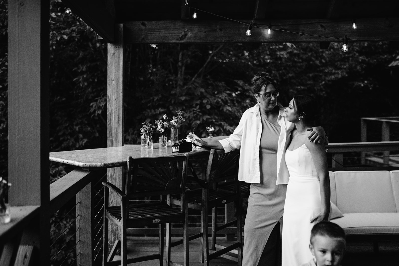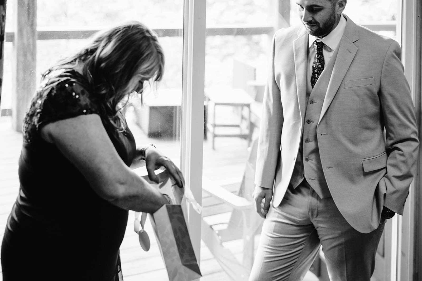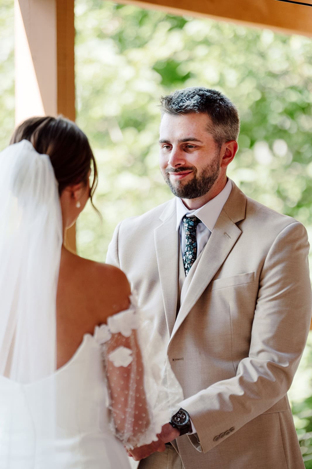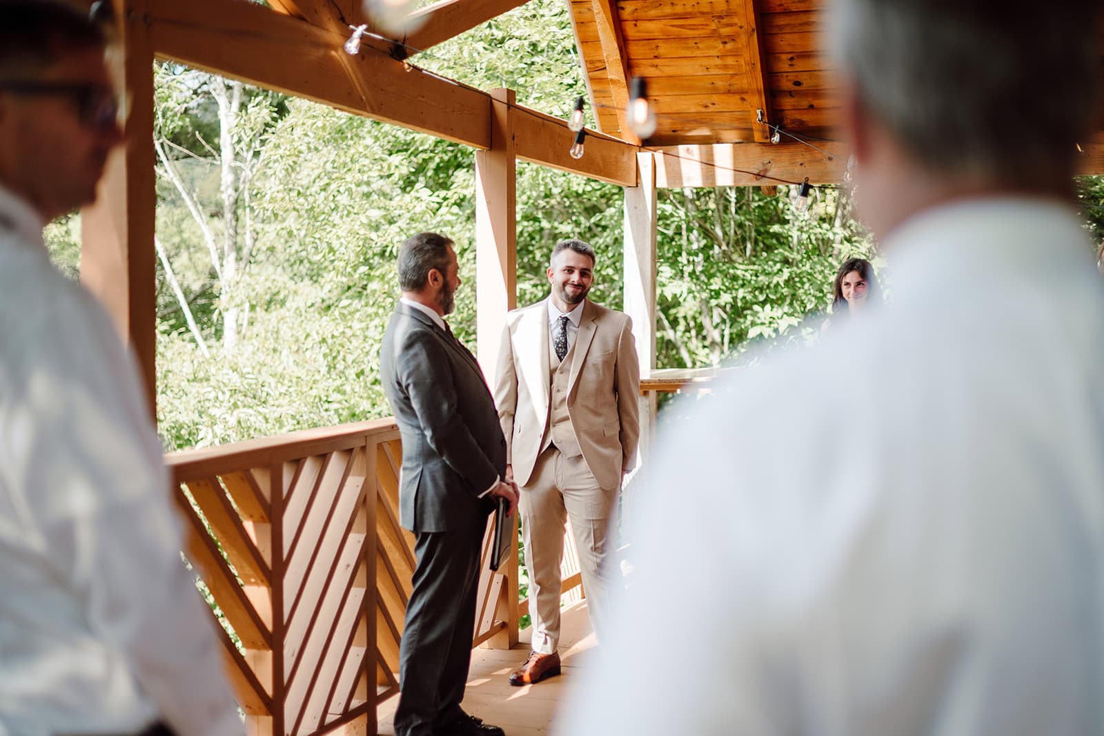 The day began at their private rental, Higher Ground in Wolf Laurel. Morgan prepared in the master bedroom, wearing her mother’s earrings and a veil crafted from her mother’s wedding dress—a beautiful nod to family heritage. Brent got ready in a separate room, taking a quiet moment to open a heartfelt gift from Morgan.