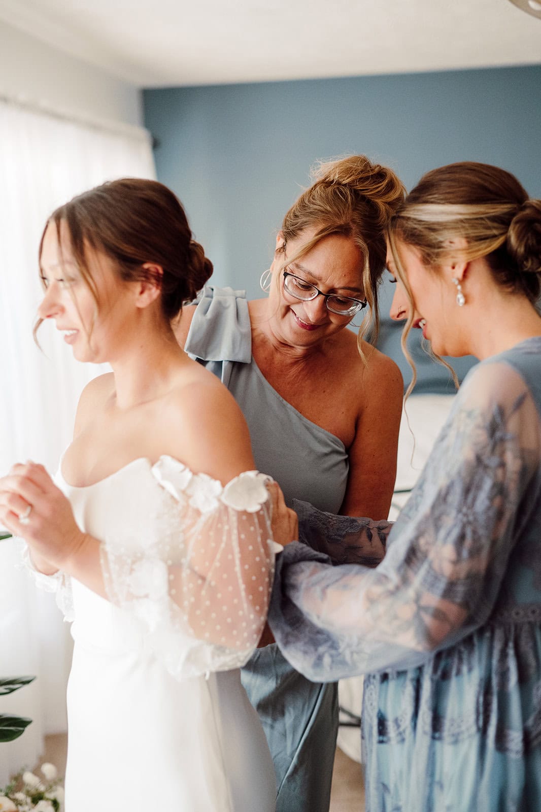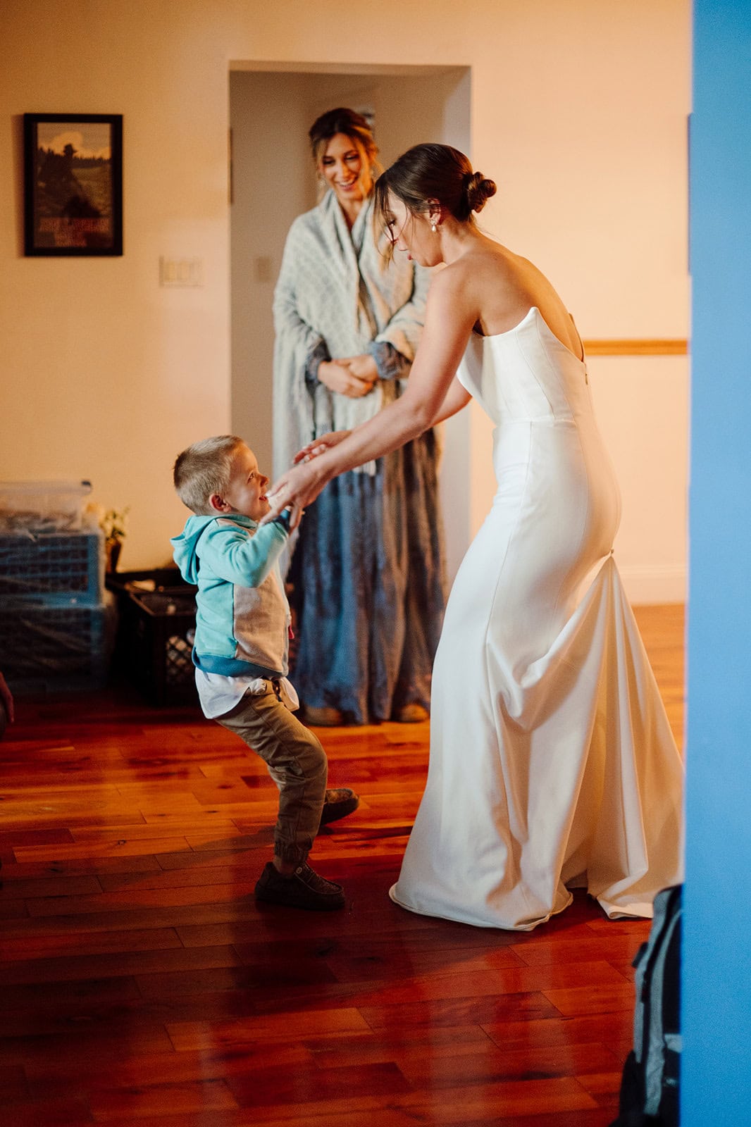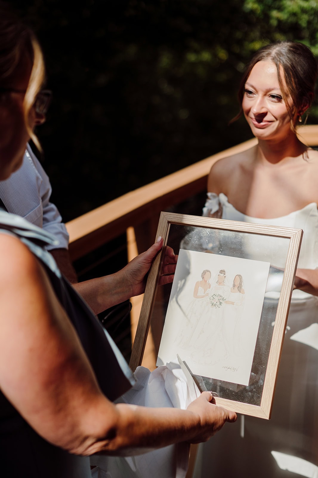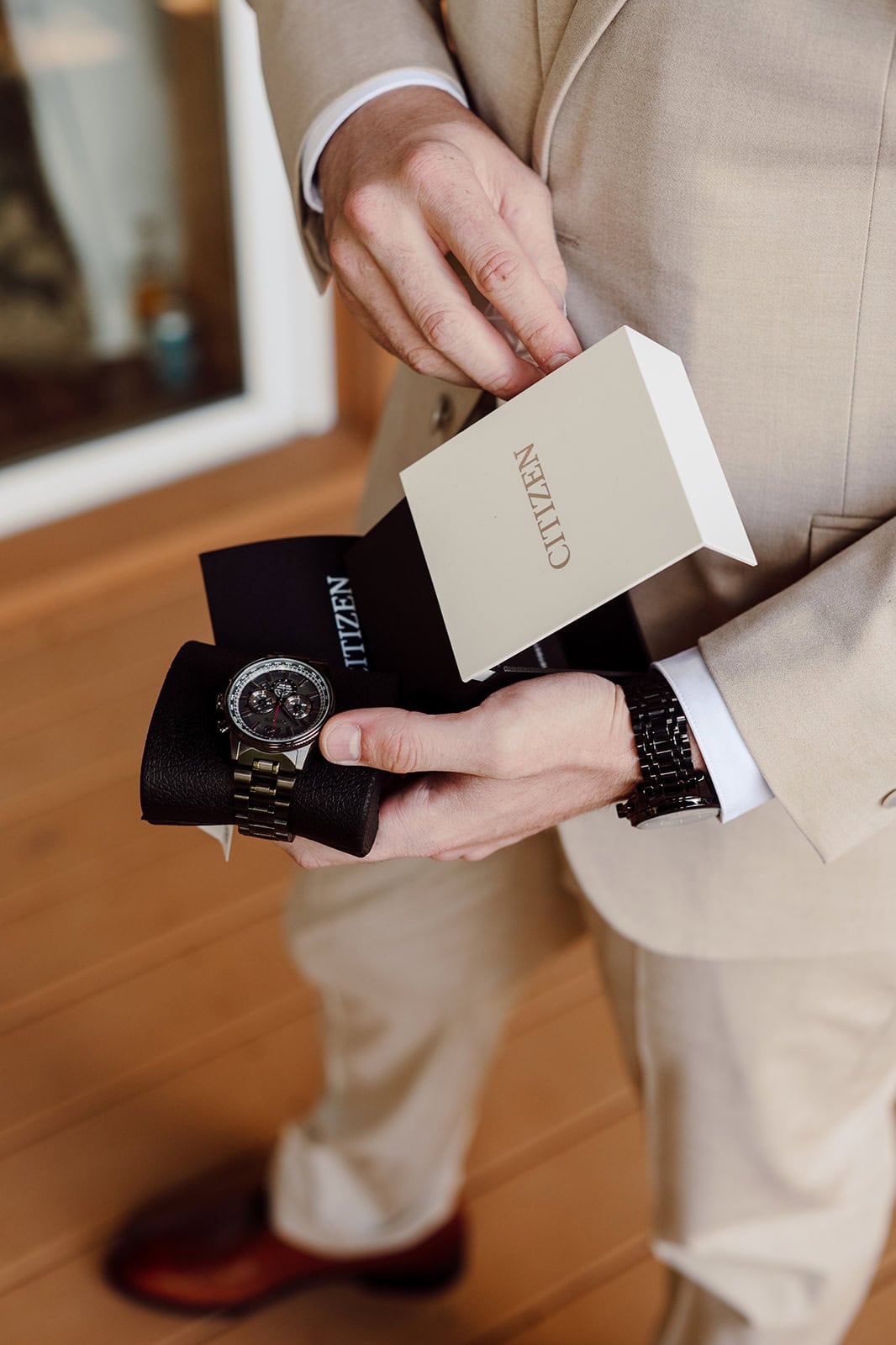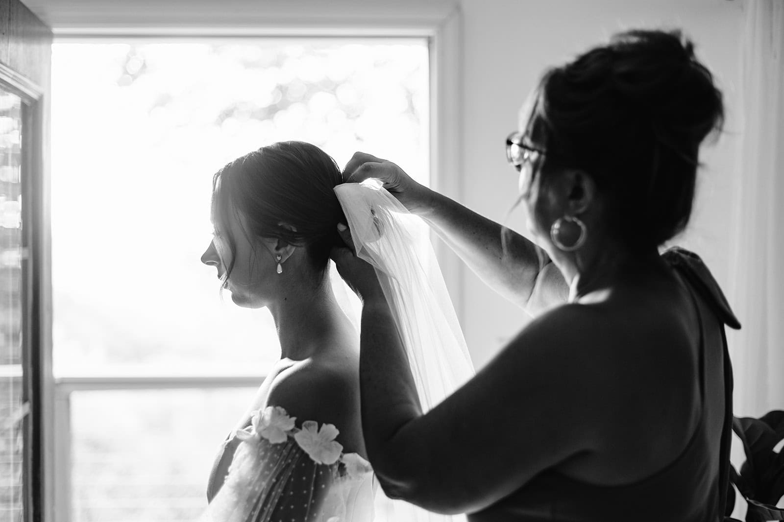 The day began at their private rental, Higher Ground in Wolf Laurel. Morgan prepared in the master bedroom, wearing her mother’s earrings and a veil crafted from her mother’s wedding dress—a beautiful nod to family heritage. Brent got ready in a separate room, taking a quiet moment to open a heartfelt gift from Morgan.