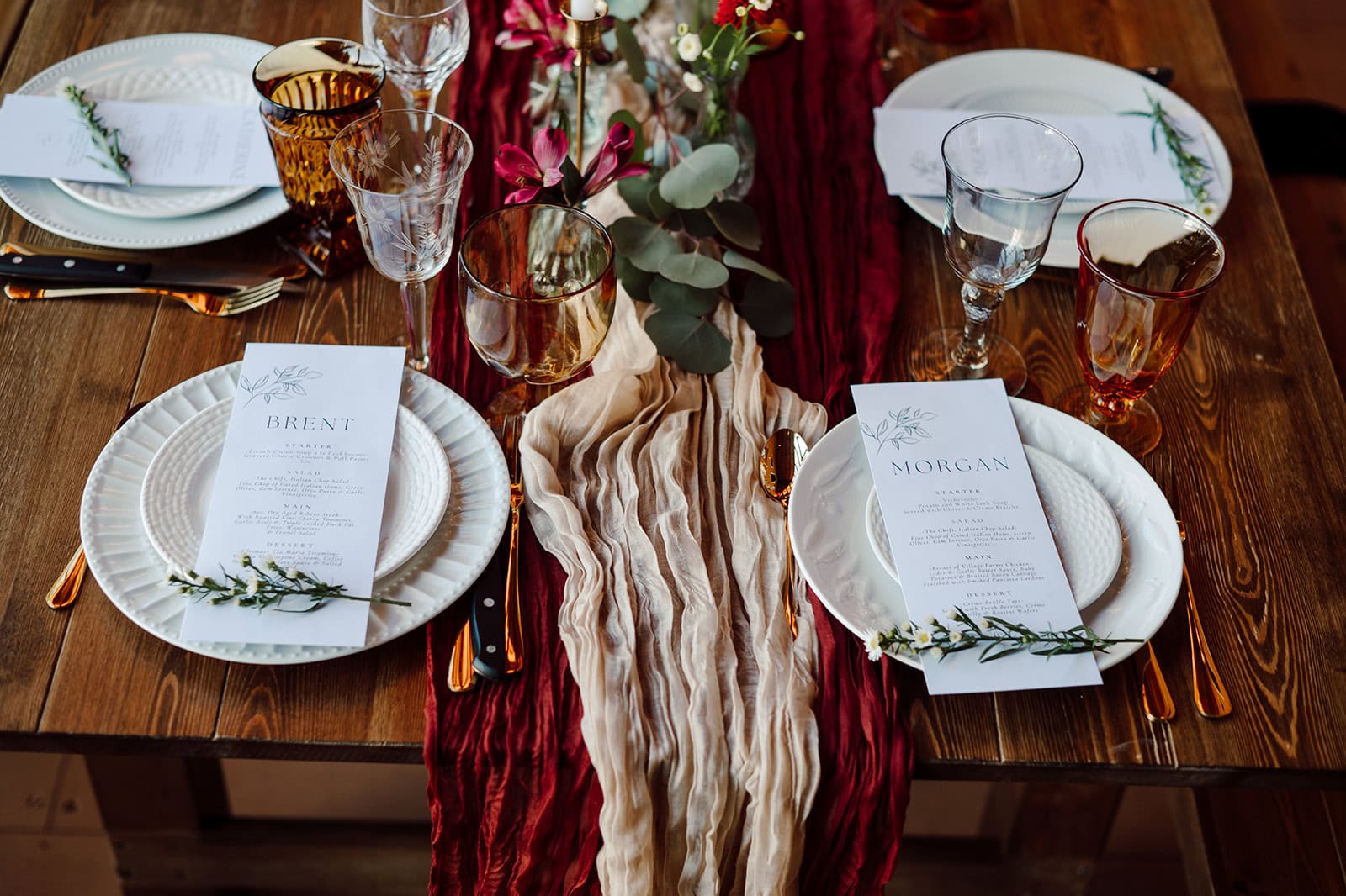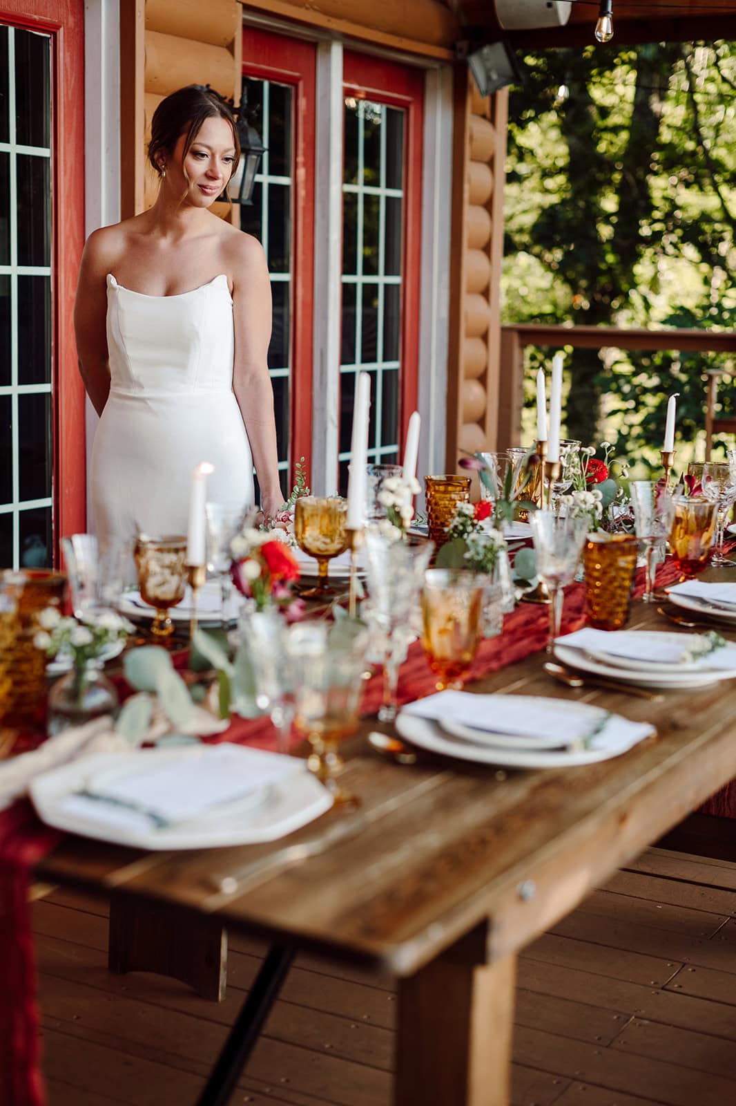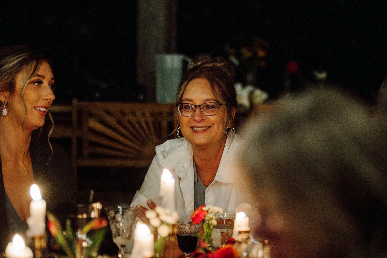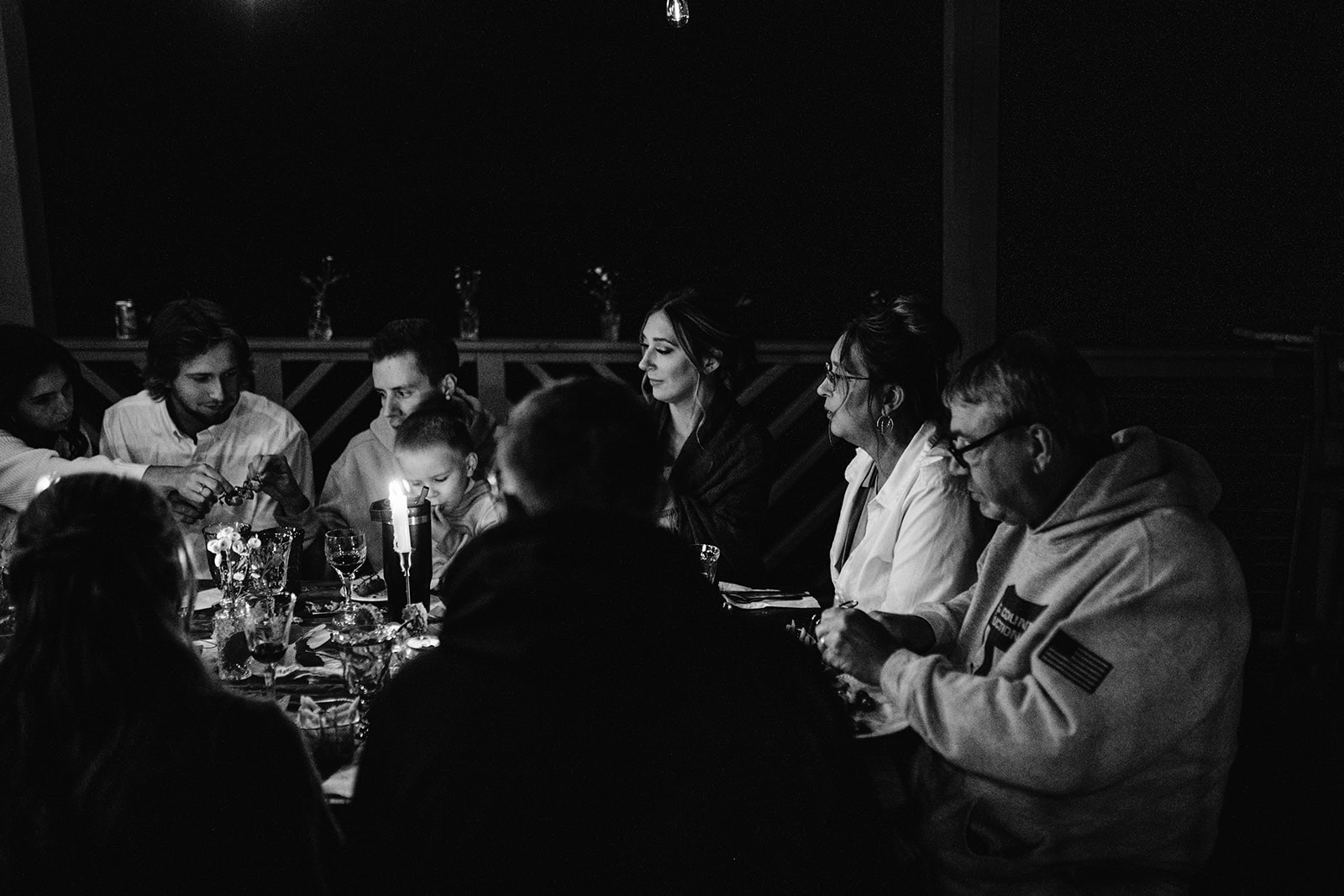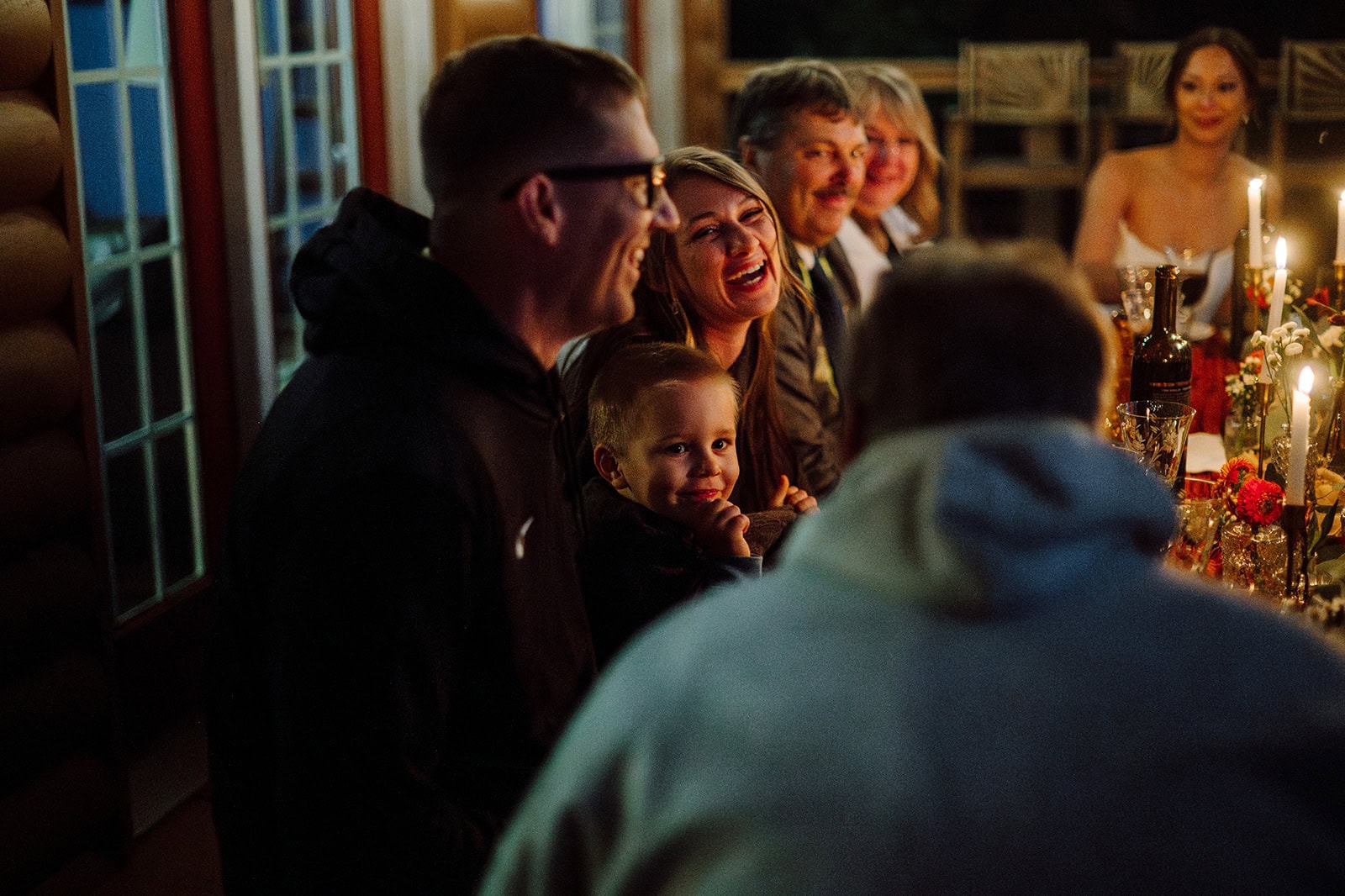 After the portraits, the group returned to the rental property for a cozy reception. The Mountain Garden Chef, Graham Overal, prepared a delicious dinner, and toasts were shared between courses, adding to the warmth of the evening. As the sun set, Morgan and Brent stepped outside for golden hour portraits, capturing the joy and serenity of their special day.