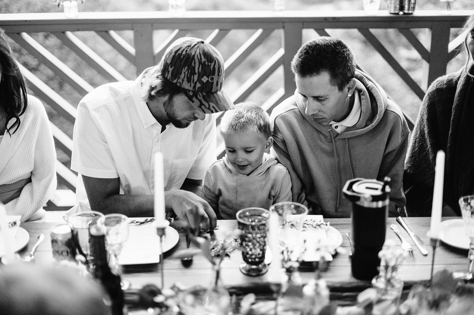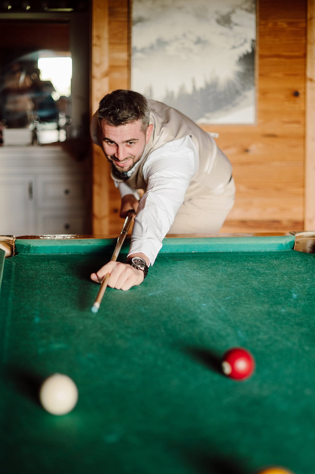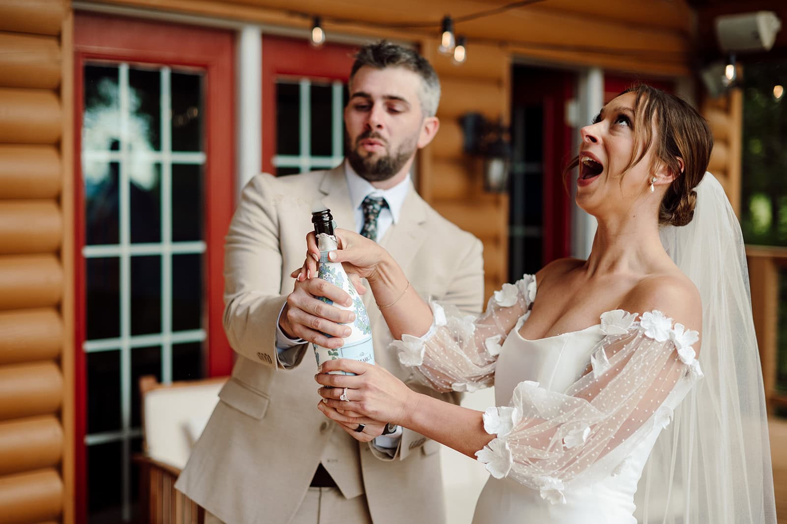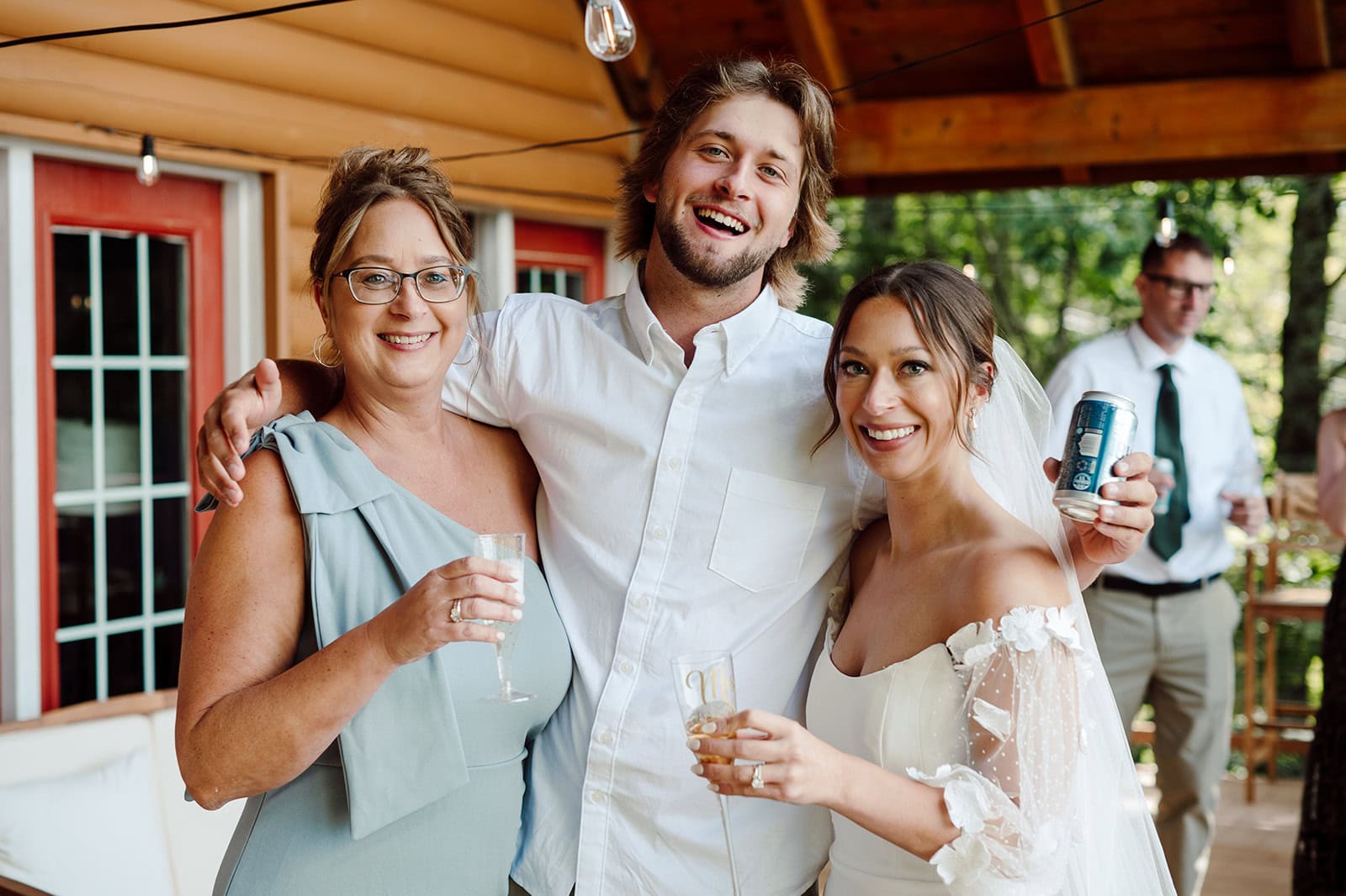 After the portraits, the group returned to the rental property for a cozy reception. The Mountain Garden Chef, Graham Overal, prepared a delicious dinner, and toasts were shared between courses, adding to the warmth of the evening. As the sun set, Morgan and Brent stepped outside for golden hour portraits, capturing the joy and serenity of their special day.