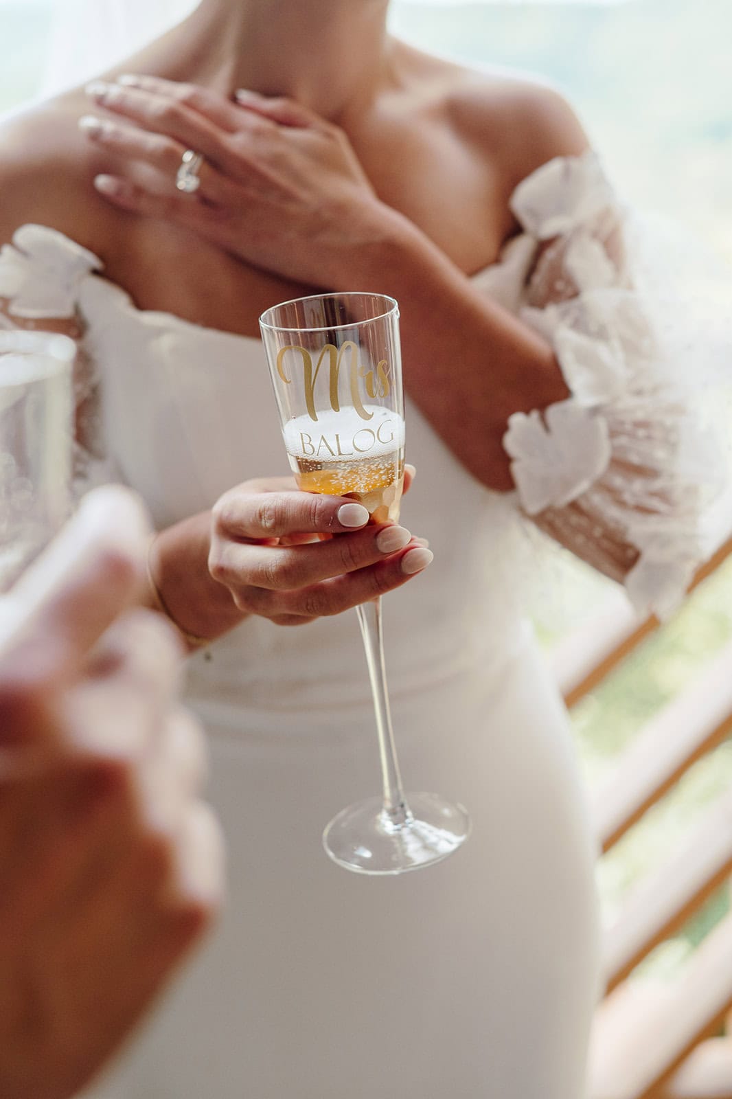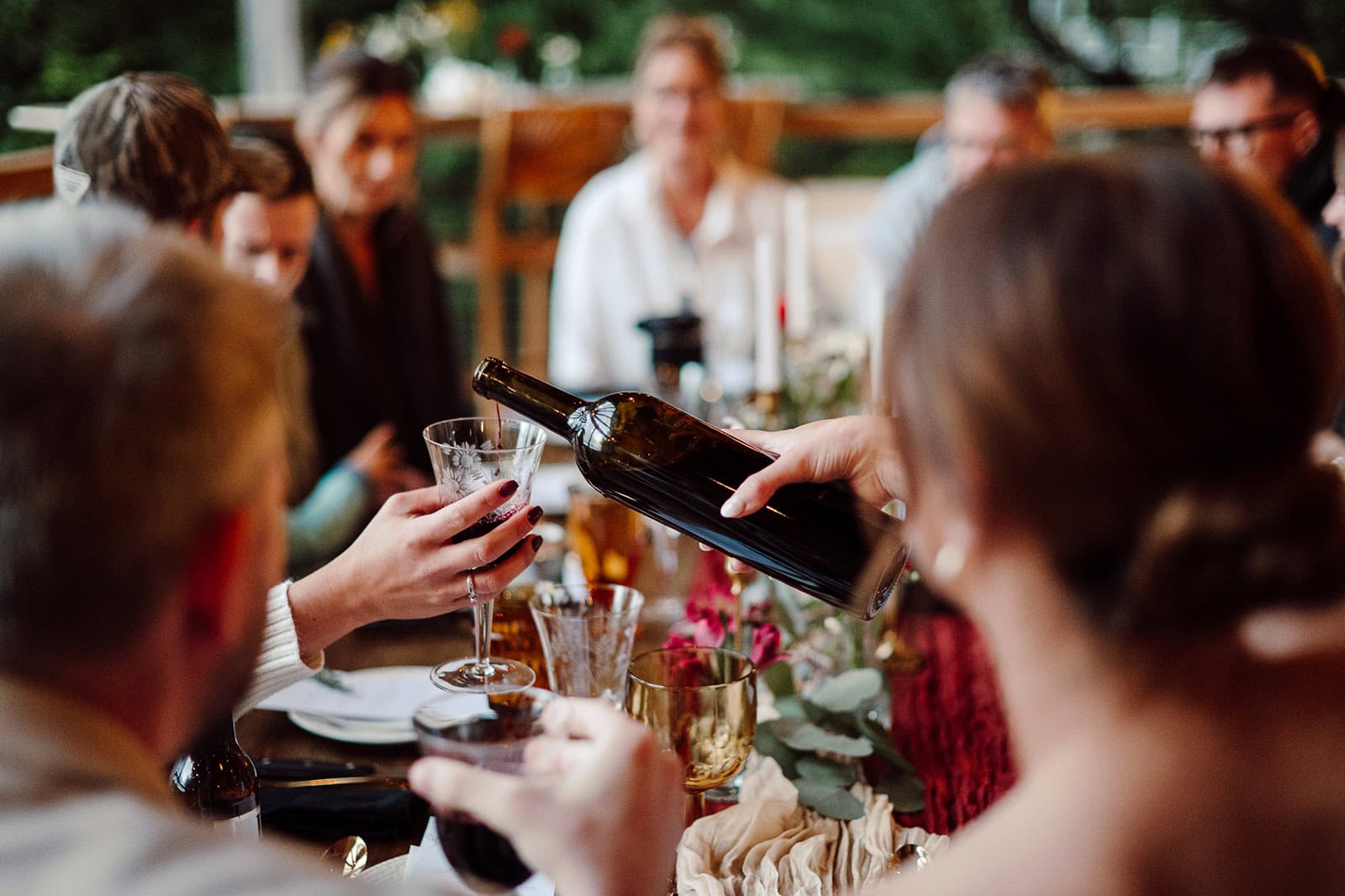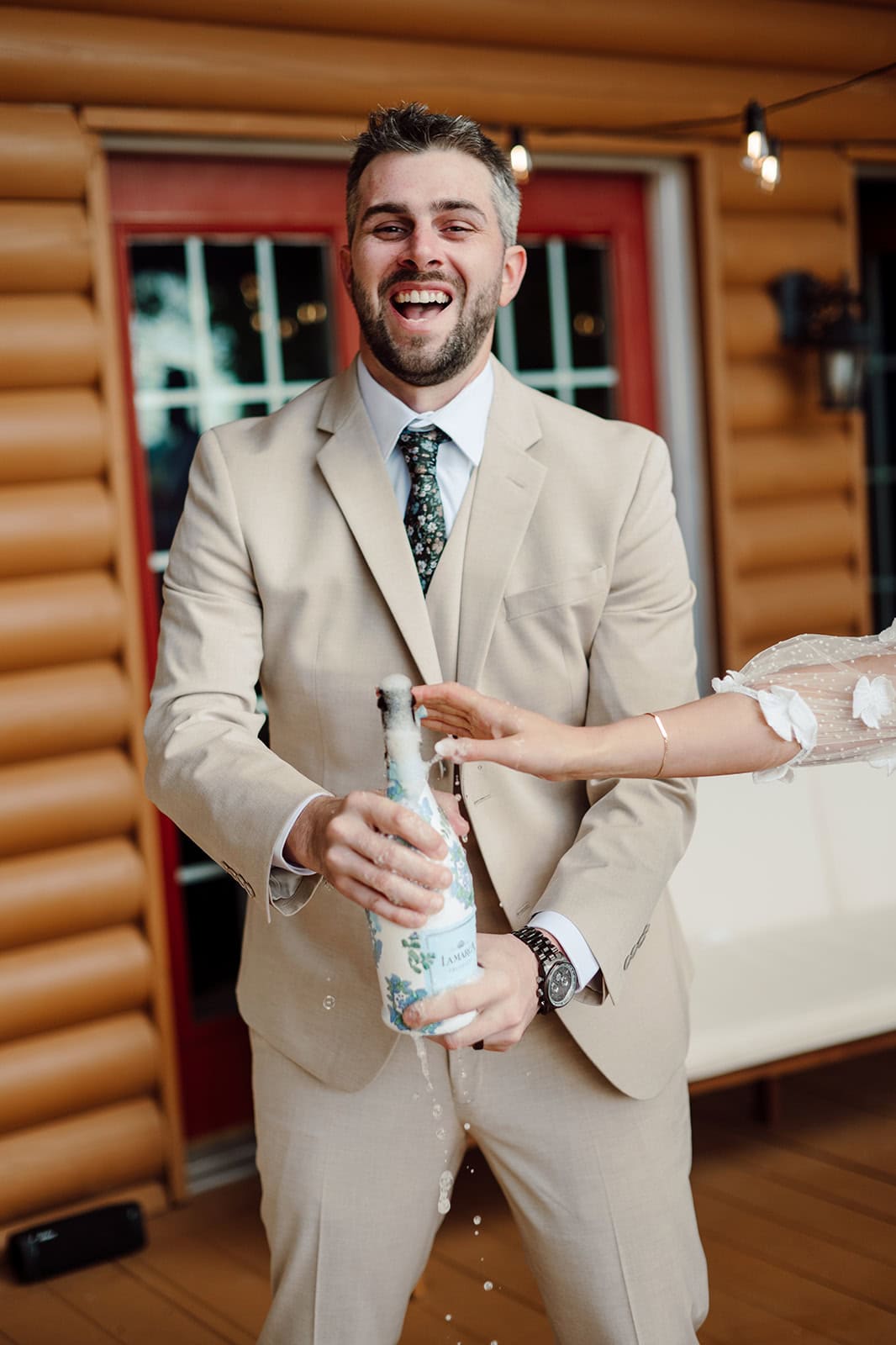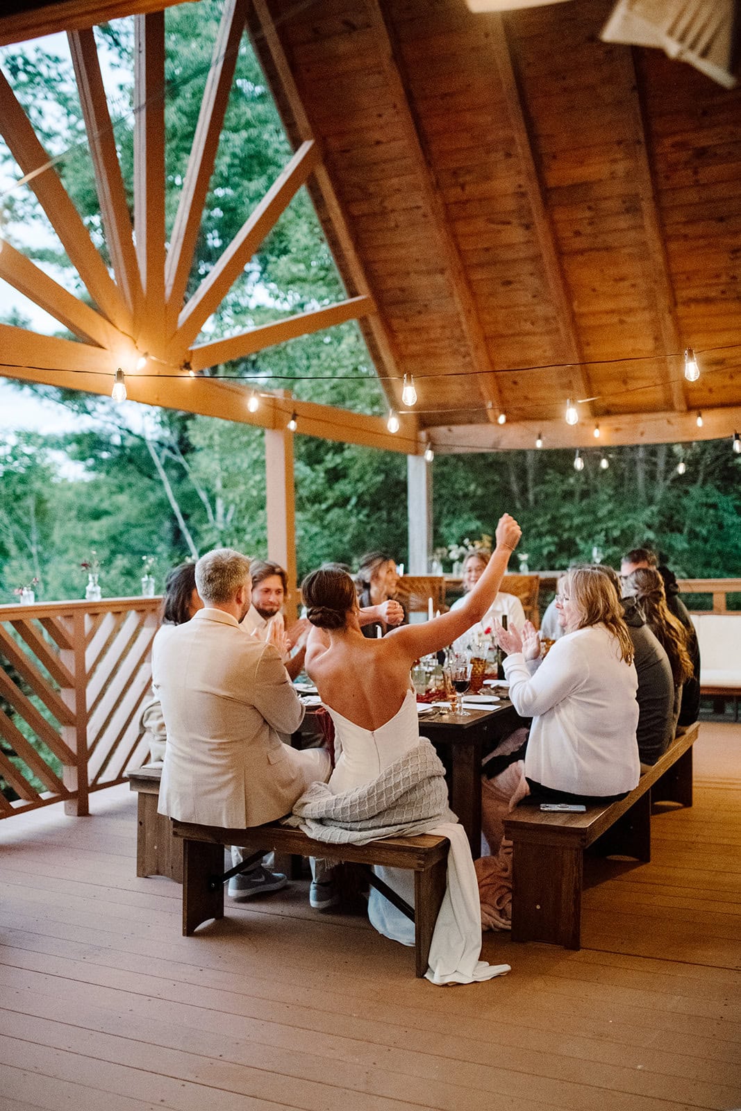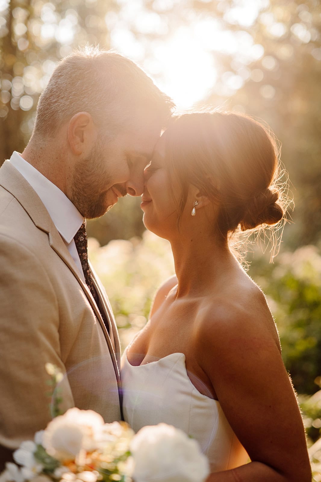 After the portraits, the group returned to the rental property for a cozy reception. The Mountain Garden Chef, Graham Overal, prepared a delicious dinner, and toasts were shared between courses, adding to the warmth of the evening. As the sun set, Morgan and Brent stepped outside for golden hour portraits, capturing the joy and serenity of their special day.