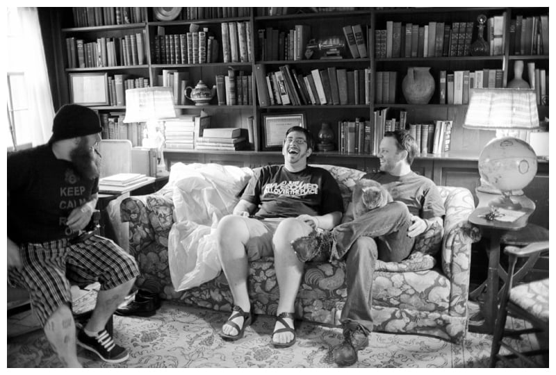 A human pyramid including Carolyn, Caroline and Jake from Asheville-based Wedding Photography Collective, Wilder Weddings Collective