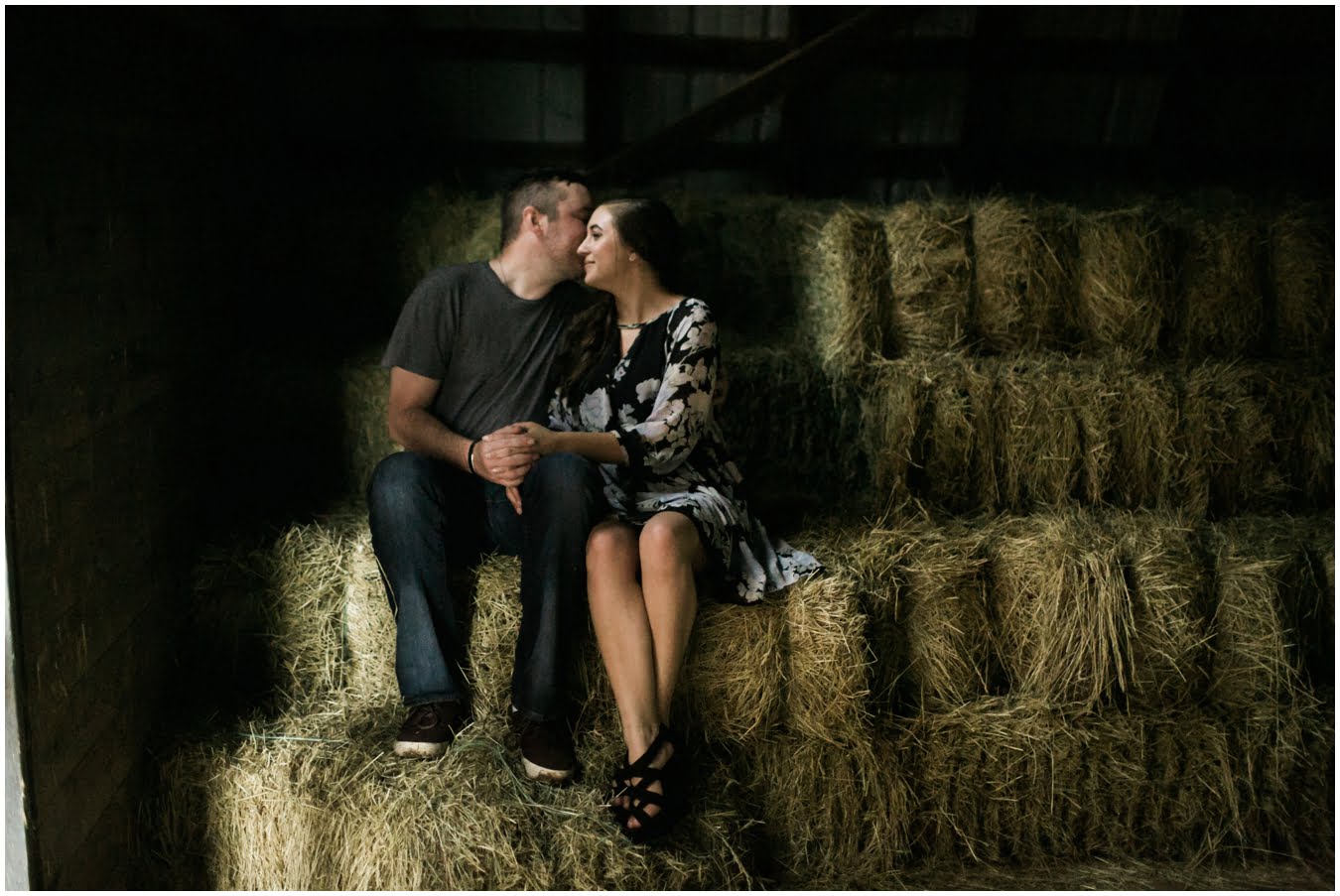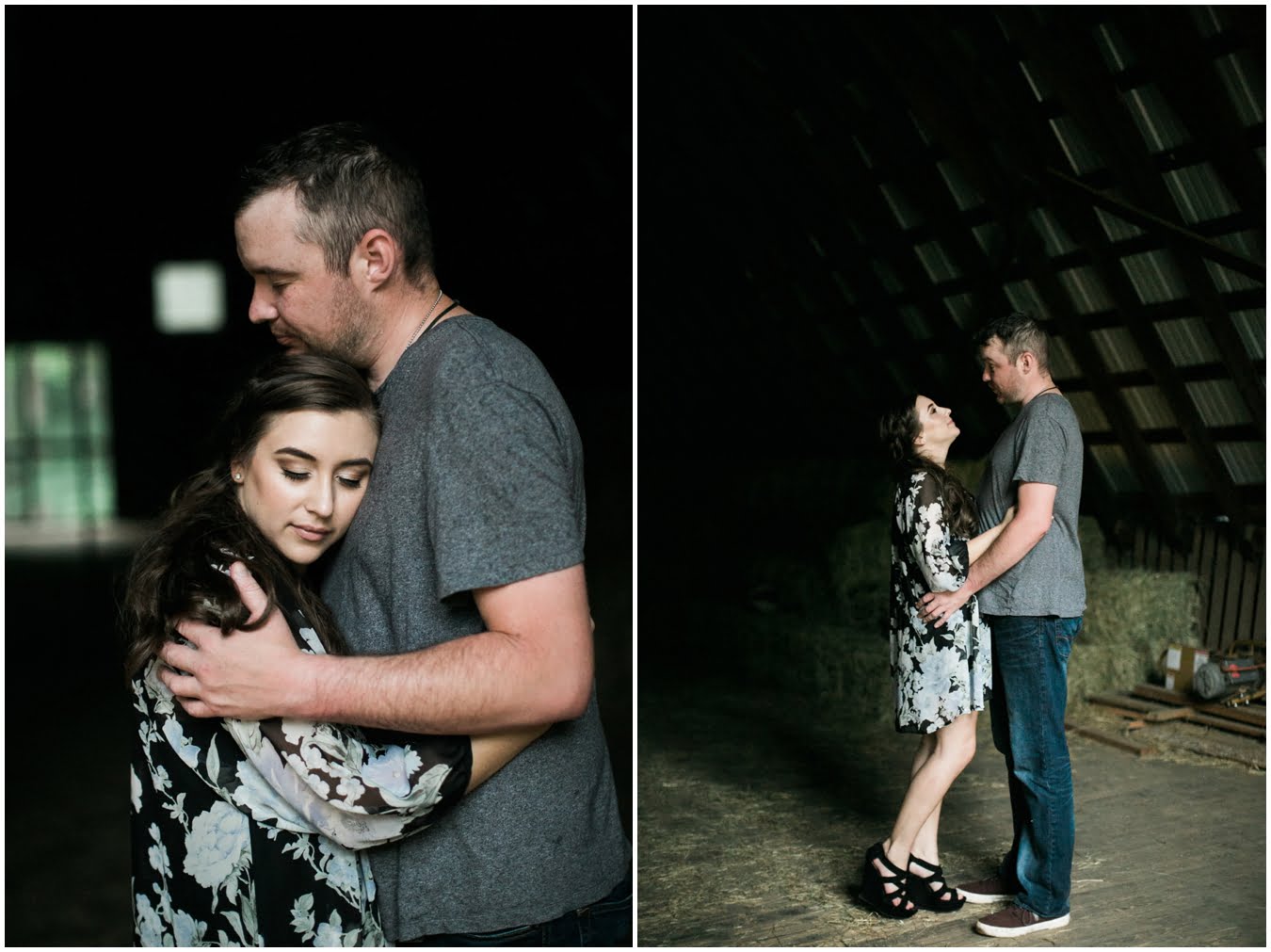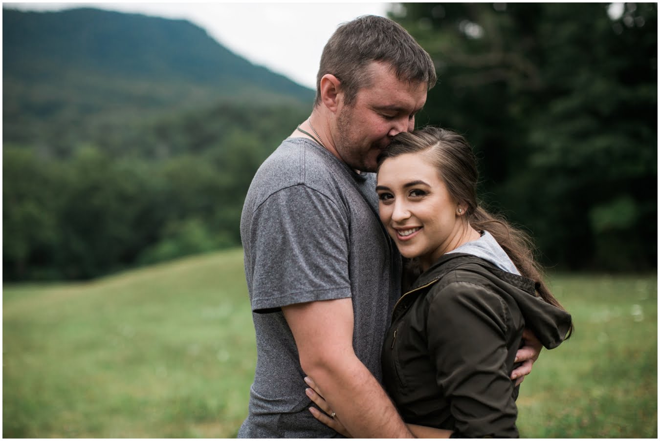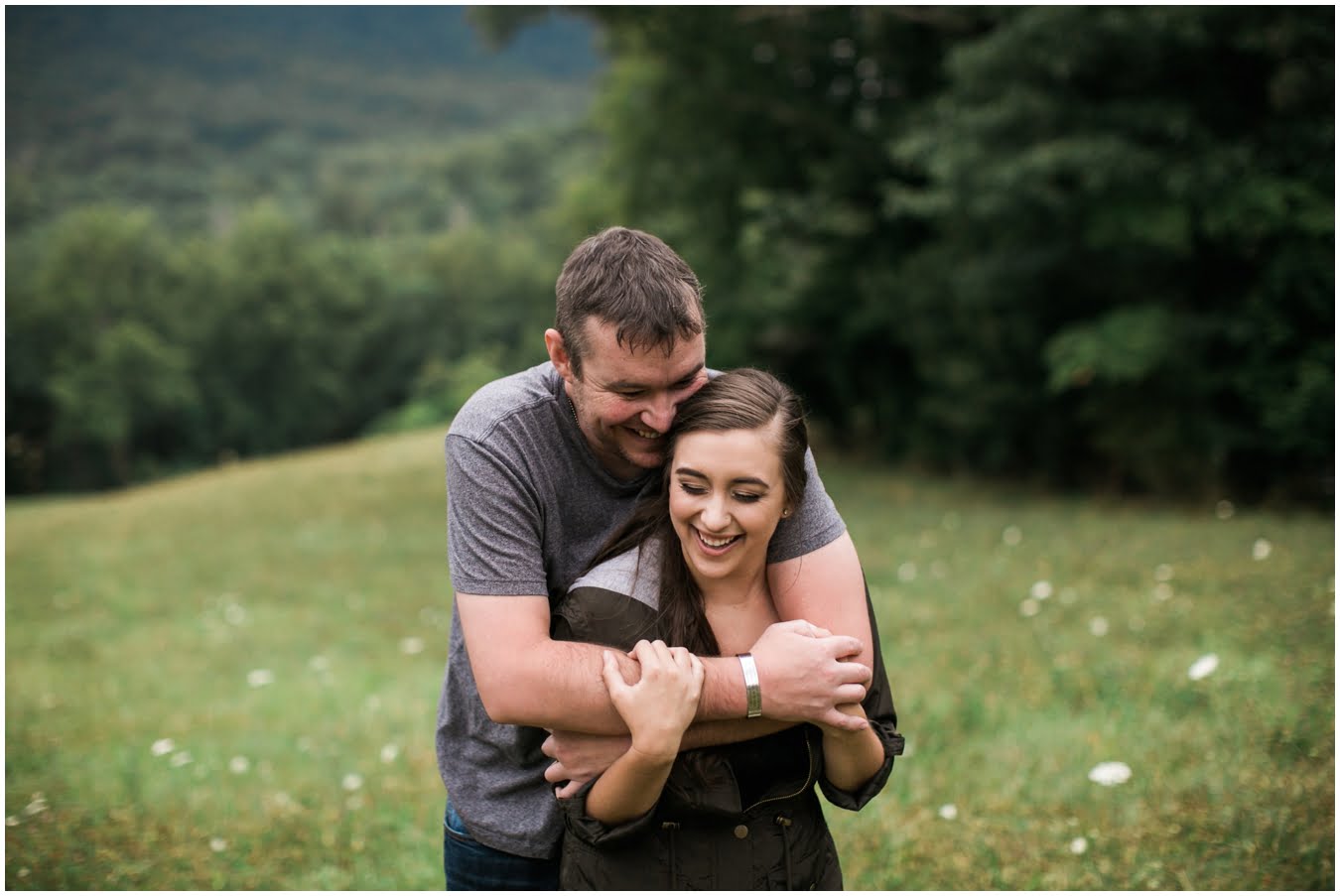 We had plans to hike up to a gorgeous bald, but as the shoot time grew closer and the clouds got thicker I made a game-time decision and we went instead to the family farm of a dear friend. You guys, I’m so glad we did. We couldn’t have timed the shoot better if we had tried! We got some time in a gorgeous field of wildflowers with the mountains behind, and JUST as we hopped in the car to drive to the barn, the skies opened up, giving us the perfect mood for some quiet portraits in the hayloft with the rain pattering on the roof. Just as we finished up there, the rain let up and mists began to rise from the fields, giving us some gorgeous, ethereal light to finish up the shoot with. The last few photos are my favorite…running from the rain as the skies opened up again just as we were done. This rainy engagement shoot is possibly one of my favorites this season!