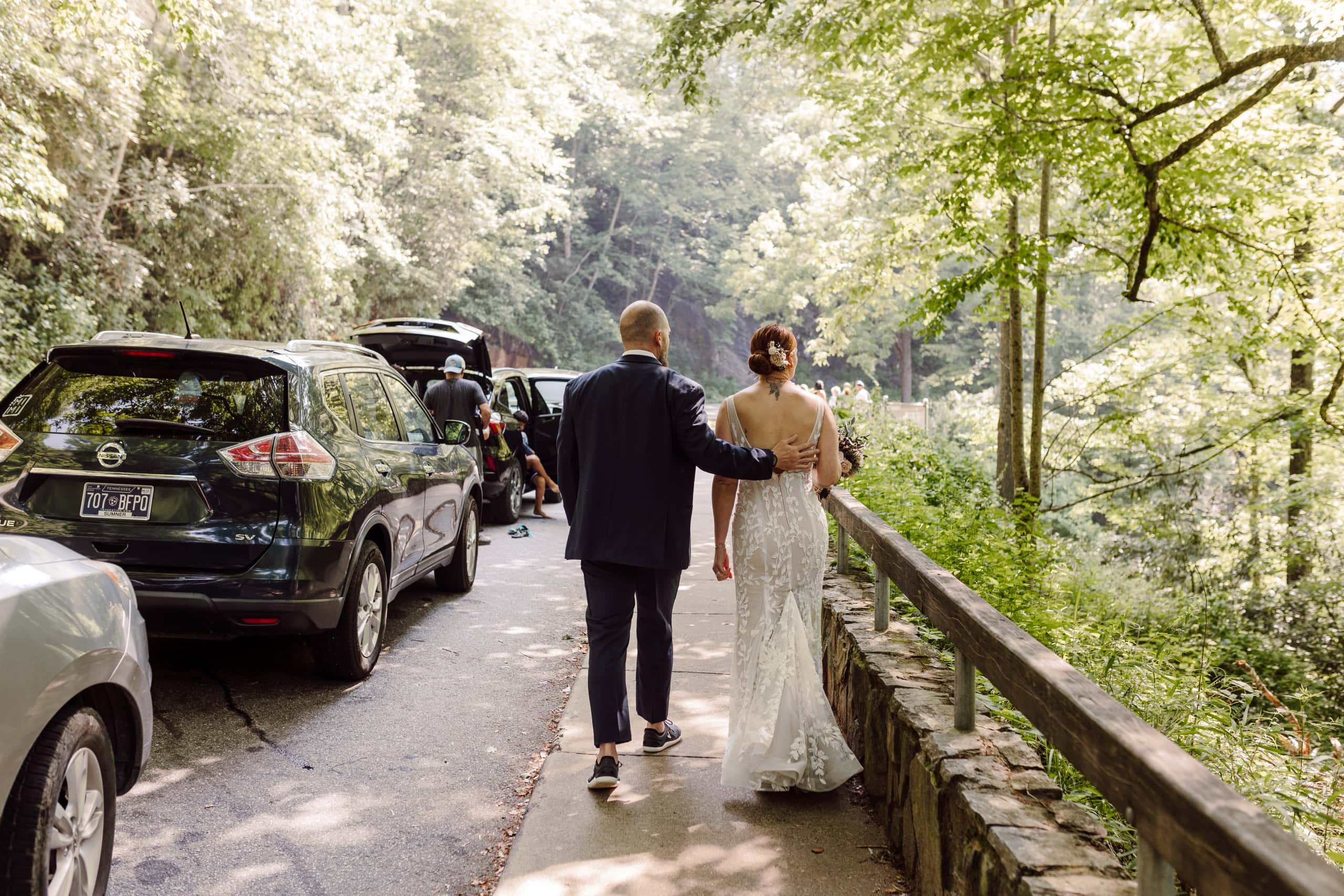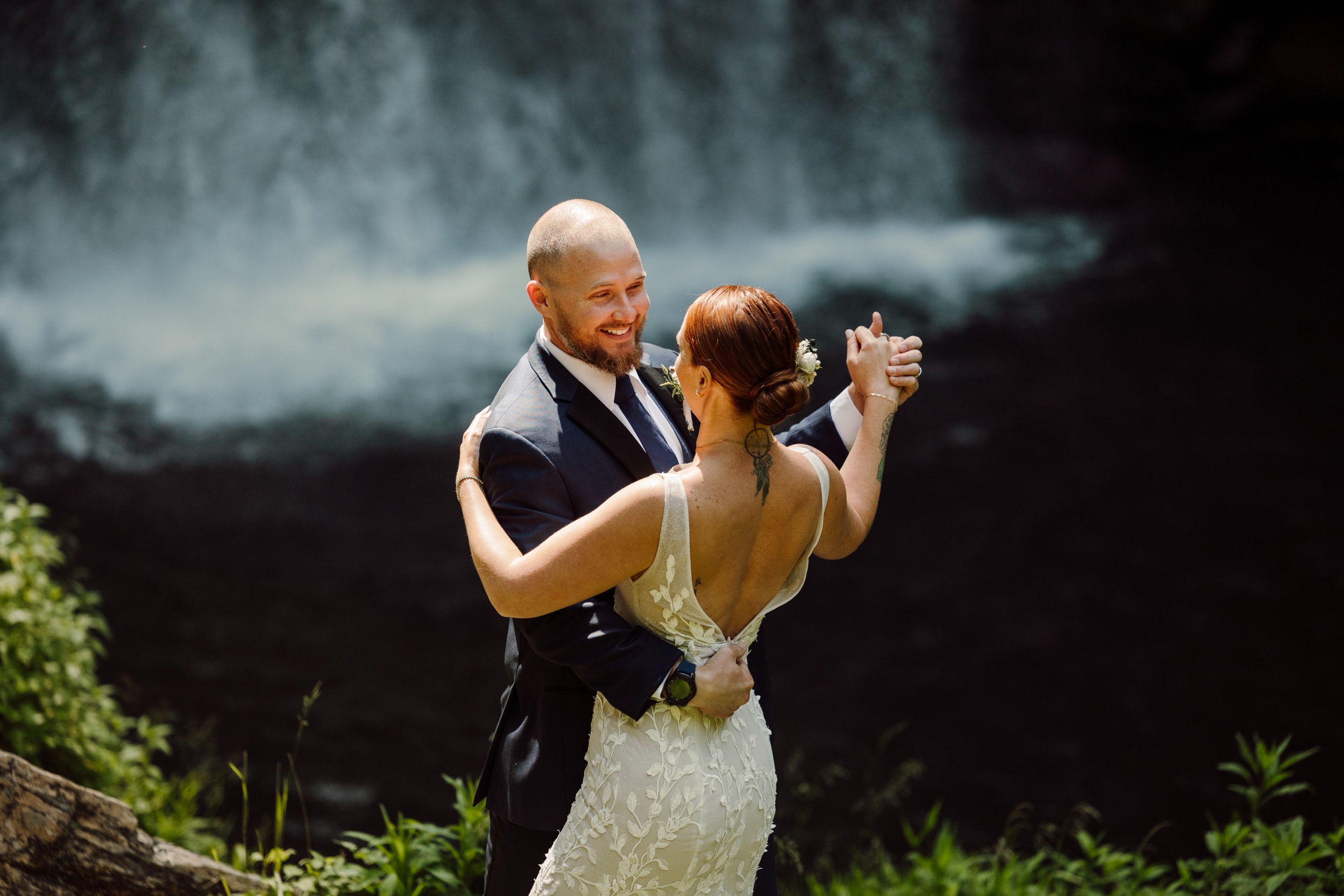 After capturing some joyful family moments, Shea and Chris continued their adventurous wedding day, making their way to the mesmerizing Looking Glass Falls. The roaring waters created a quiet space for them to celebrate together and take some epic portraits. And after soaking in the beauty, the newlyweds took a well-deserved break to rest and rejuvenate.