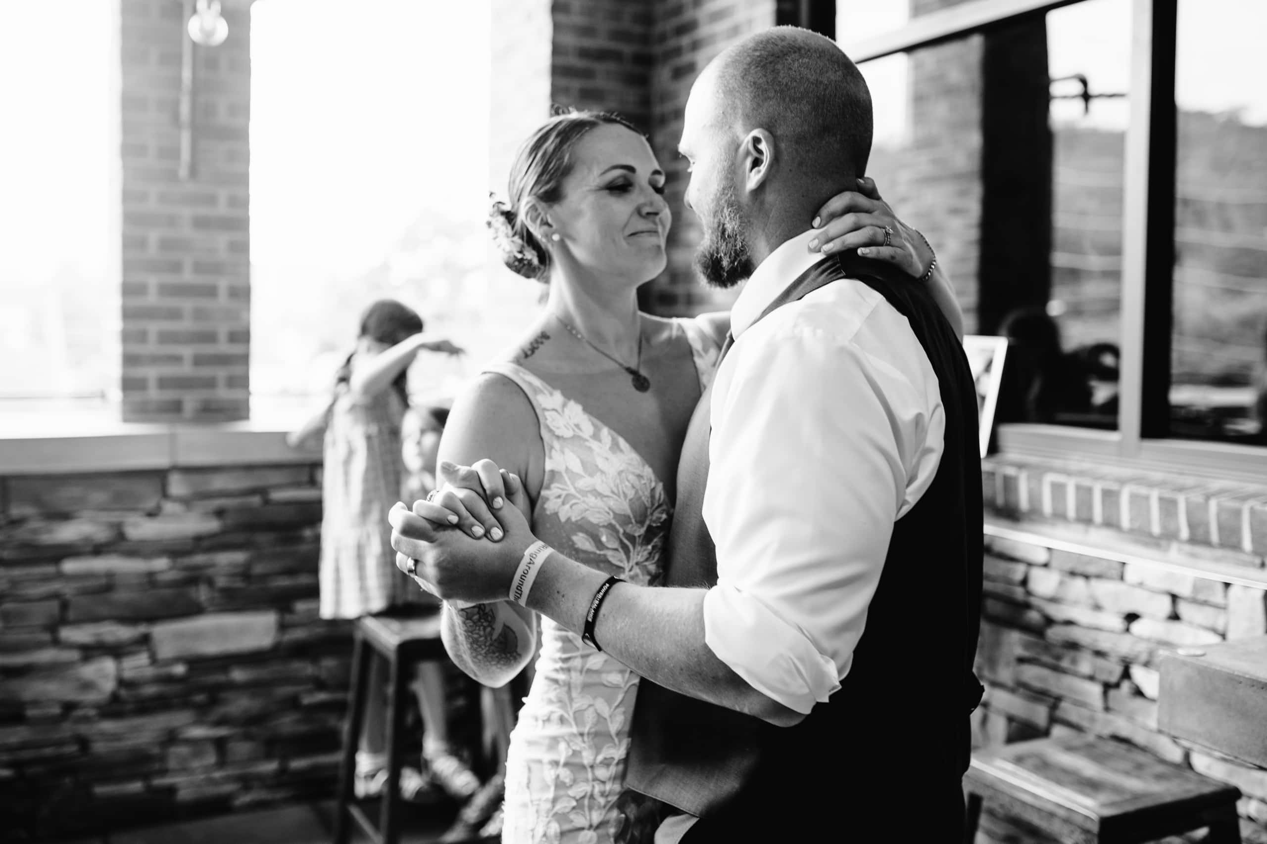 As the evening rolled in, Shea and Chris continued to the bustling Greenman Brewery in downtown Asheville, where they had reserved the rooftop patio for their dinner party. Guests were treated to a delicious dinner provided by the brewery, after which heartfelt toasts were raised in honor of the newlyweds, and Shea and Chris graced the floor with their first dance and cut their cake from Nothing Bunt Cakes. The ambiance was a blend of fun, excitement, and nostalgia.
